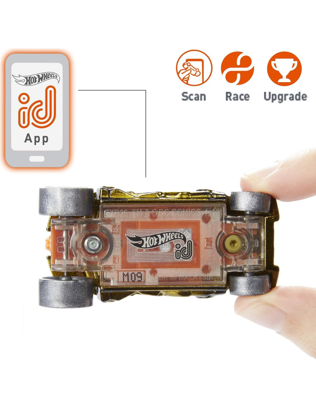Hot Wheels id es un sistema de juego único que combina la emoción de las carreras de Hot Wheels con una plataforma segura, conectada de creatividad, experimentación y competencia. Todo comienza con corredores únicos que tienen un chip NFC integrado que les da una identidad única. Descarga la aplicación gratuita y mide el rendimiento en un teléfono inteligente o tableta. Hot Wheels id es la forma revolucionaria de jugar con vehículos y pistas de Hot Wheels. Gran regalo para mayores de 8 años. Cada uno se vende por separado y está sujeto a disponibilidad. Los colores y decoraciones pueden variar.
