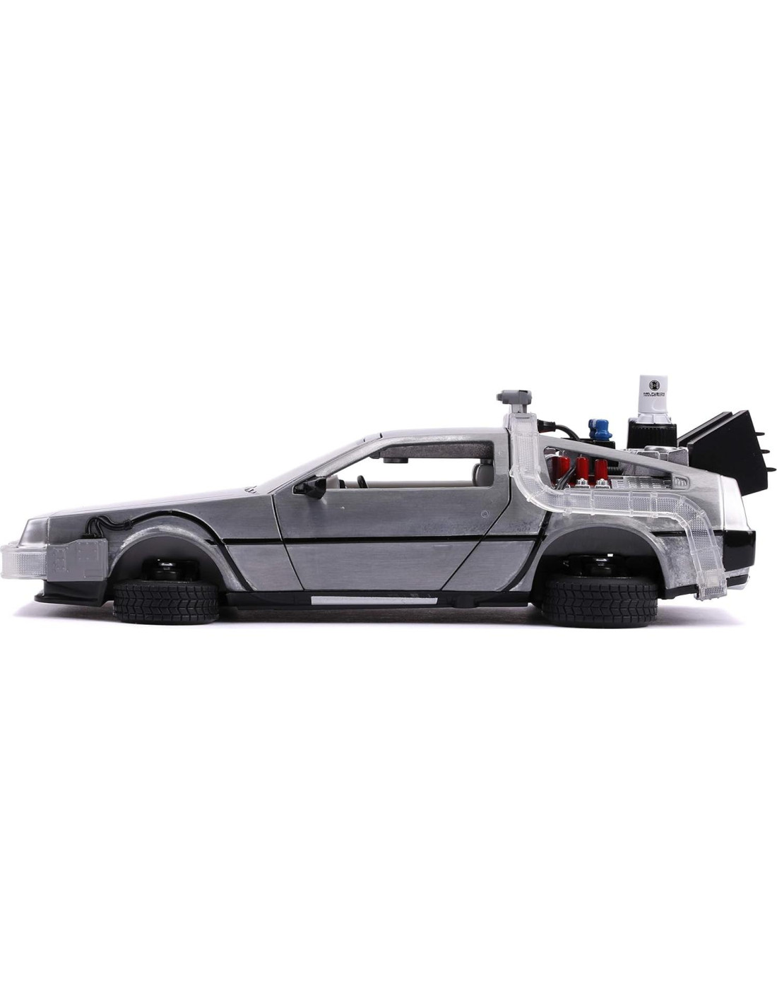 - Como se ve en Regreso al Futuro Parte II, la Máquina del Tiempo ha sido tomada directamente de la pantalla grande y traída a ti en un modelo a escala 1:24 de metal fundido
