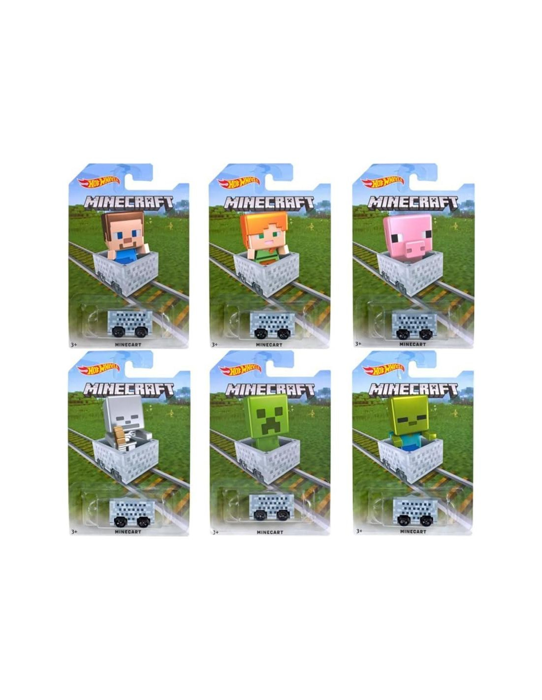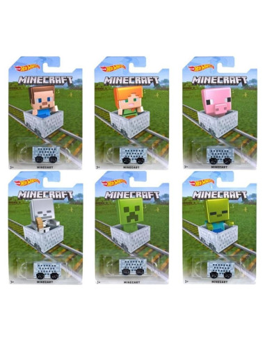 - Conjunto completo de 6 Carros de Minecraft con diferentes obras de arte en el empaque.