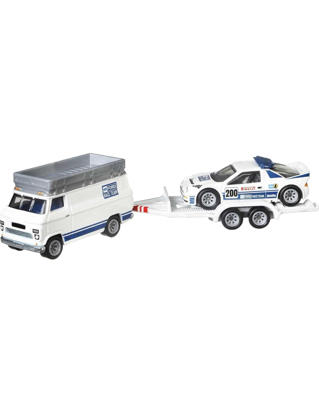 - Diseñado a escala 1:64, el vehículo de transporte del equipo puede cargar y descargar realmente un vehículo.