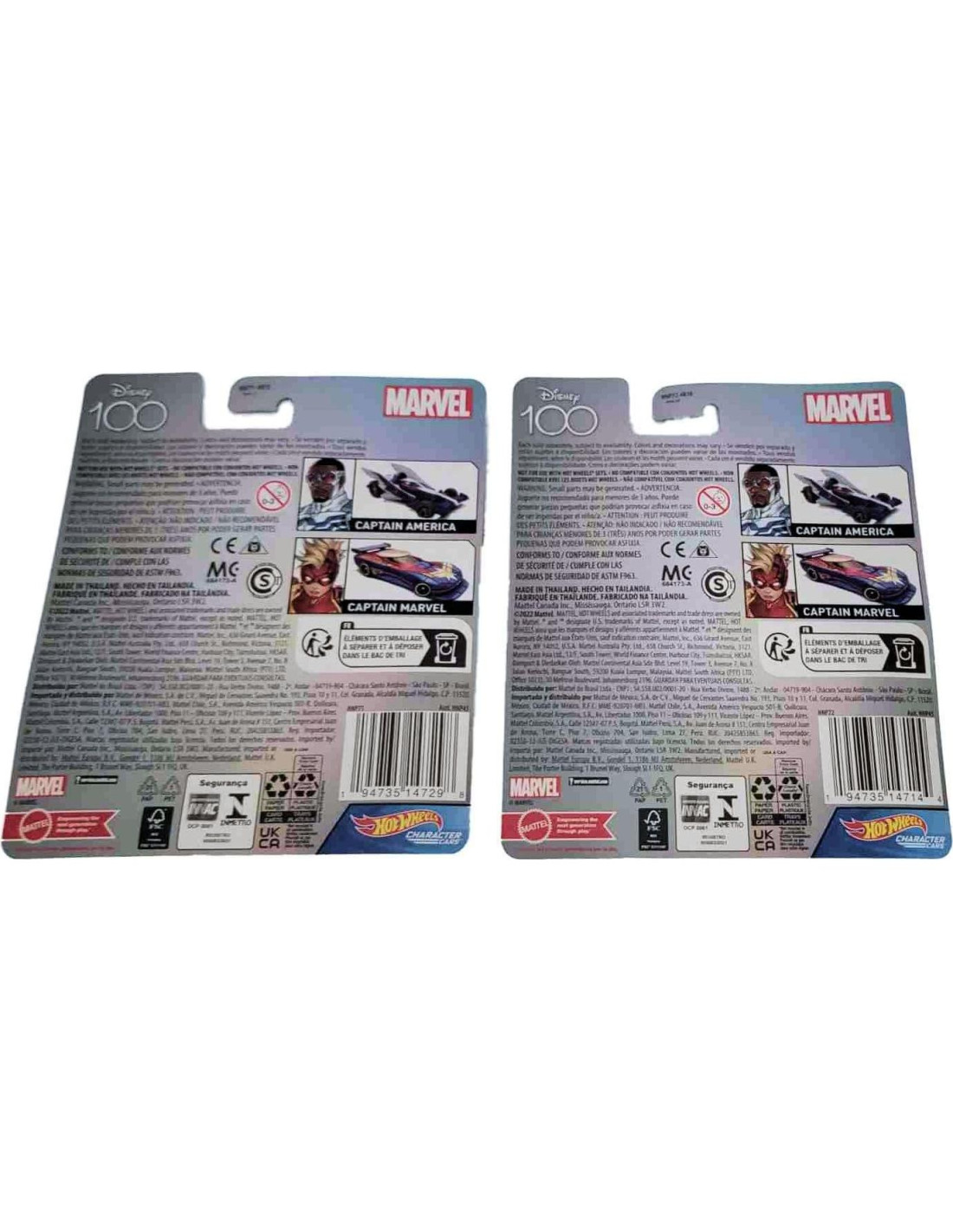 Celebra el 100 aniversario de Disney con este exclusivo Paquete de 2 Autos de Personajes Marvel de Hot Wheels que presenta a Capitán América y Capitán Marvel. Estos vehículos de metal fundido están diseñados de manera única para capturar la esencia de estos icónicos superhéroes, transformando sus características más distintivas en una increíble forma automotriz. Cada auto muestra detalles intrincados que reflejan los looks y poderes característicos de los héroes, desde el diseño inspirado en el escudo patriótico del Capitán América hasta el estilo influenciado por la energía cósmica de Capitán Marvel. Perfectos tanto para entusiastas de Hot Wheels como para fanáticos de Marvel, estos vehículos coleccionables combinan la emoción de los autos de metal fundido con la emoción de los más grandes héroes de Marvel. Agrega estos autos de personajes de edición especial a tu colección y da vida al universo Marvel de una manera completamente nueva. Apto para mayores de 3 años, estos vehículos de metal fundido de primera calidad son un regalo ideal para coleccionistas y jóvenes fanáticos de los superhéroes.