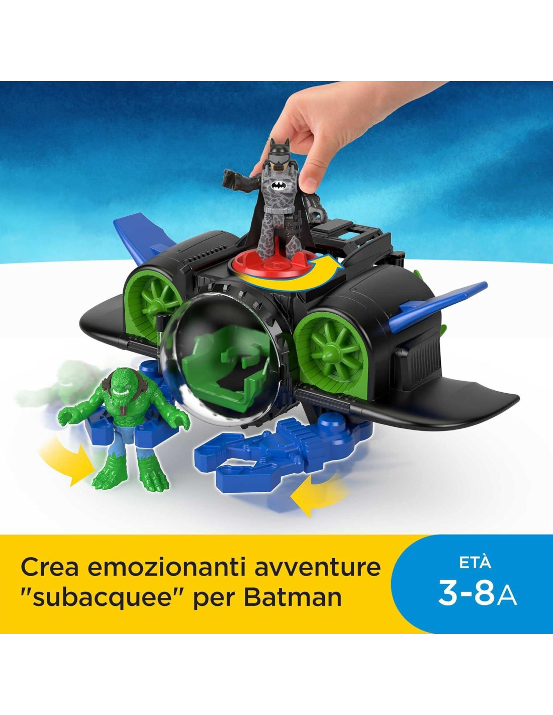 Batman patrulla las costas de Gotham City en su Batsub completamente cargado. Cuando K. Croc nada hacia la ciudad e intenta lanzar un ataque, Batman entra en acción. Usando la garra del Batsub, los jóvenes luchadores contra el crimen pueden capturar a K. Croc, atraparlo en la jaula y ayudar a Batman a llevar al Supervillano a la cárcel. Los niños pueden recrear sus historias favoritas de DC Comics e imaginar nuevas por su cuenta, con este vehículo y set de figura Imaginext DC Super Friends Batsub de Fisher-Price. Imaginext Imagina Lo Que Viene! (No destinado para uso en agua).