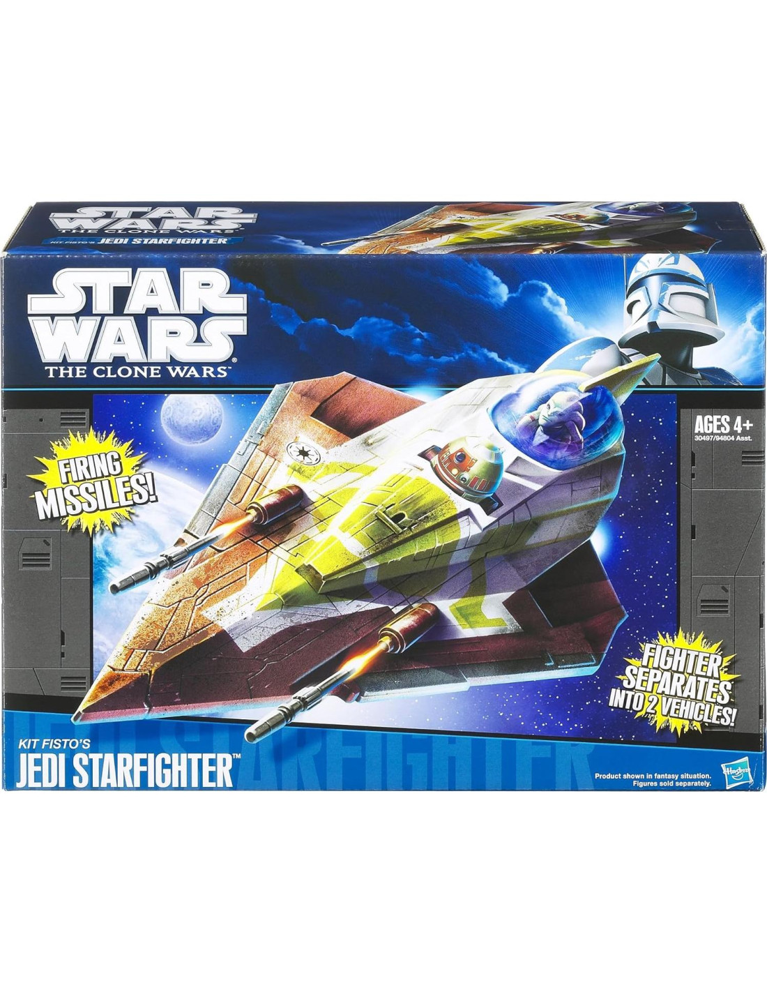 El Maestro Jedi Kit Fisto vuela un caza estelar Delta-2 experimental en varias misiones durante las Guerras Clon. La nave puede separarse en dos vehículos, ampliando sus capacidades de reconocimiento y patrullaje. Ambos vehículos tienen armamento integrado en caso de ataque. ¡Lleva tus aventuras de Star Wars al siguiente nivel con el elegante vehículo caza estelar Jedi de Kit Fisto! Este caza súper rápido tiene el lanzador de misiles y proyectiles para enfrentarse a cualquier oponente. ¡Pero tus enemigos recibirán la sorpresa de sus vidas cuando se separe en dos vehículos! Ambos vehículos tienen lanzadores de misiles. Haz que el vehículo caza estelar Jedi de Kit Fisto sea parte de tu arsenal y ¡seguro que serás victorioso!