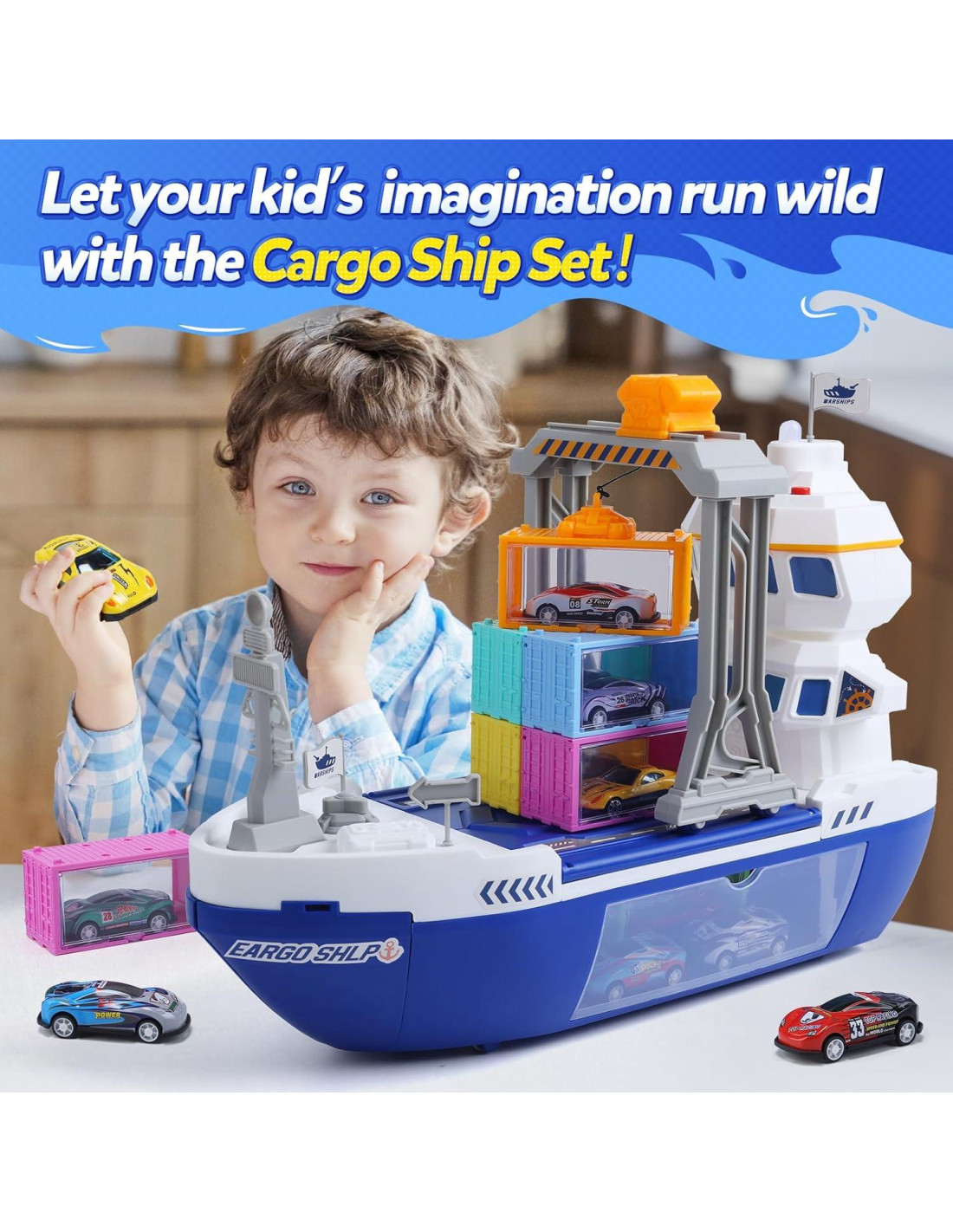 - Uso y Escena Este barco de juguete de plástico es ideal para jugar en interiores sobre una superficie plana y limpia para su operación. Los niños pueden mover la grúa y levantar contenedores de carga y lanzar autos con un botón. Es perfecto para el hogar, jardines de infancia o áreas de juego interiores. Evite sumergir el barco de juguete en agua para prevenir daños.