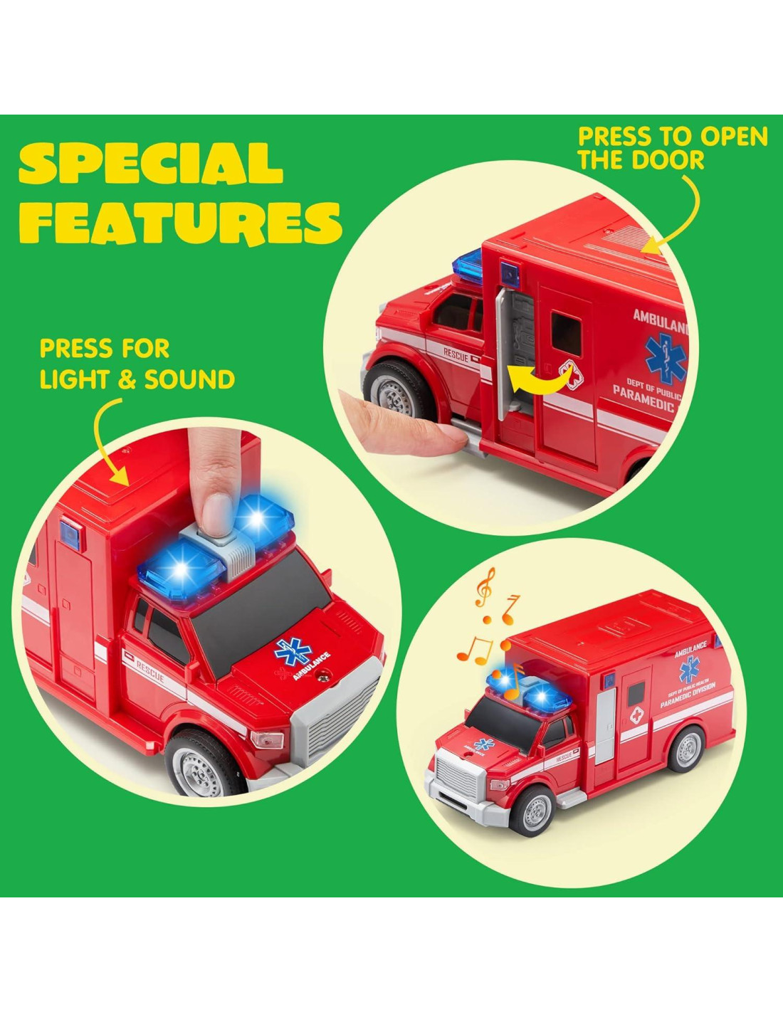 - FUNCIÓN REAL. Este conjunto de juguetes tiene múltiples funciones, cada vehículo también tiene ruedas con fricción y sirenas realistas con luces y sonidos. Todos los vehículos están hechos con detalles realistas. Un juguete perfecto que inspirará la imaginación de su hijo con diversión.