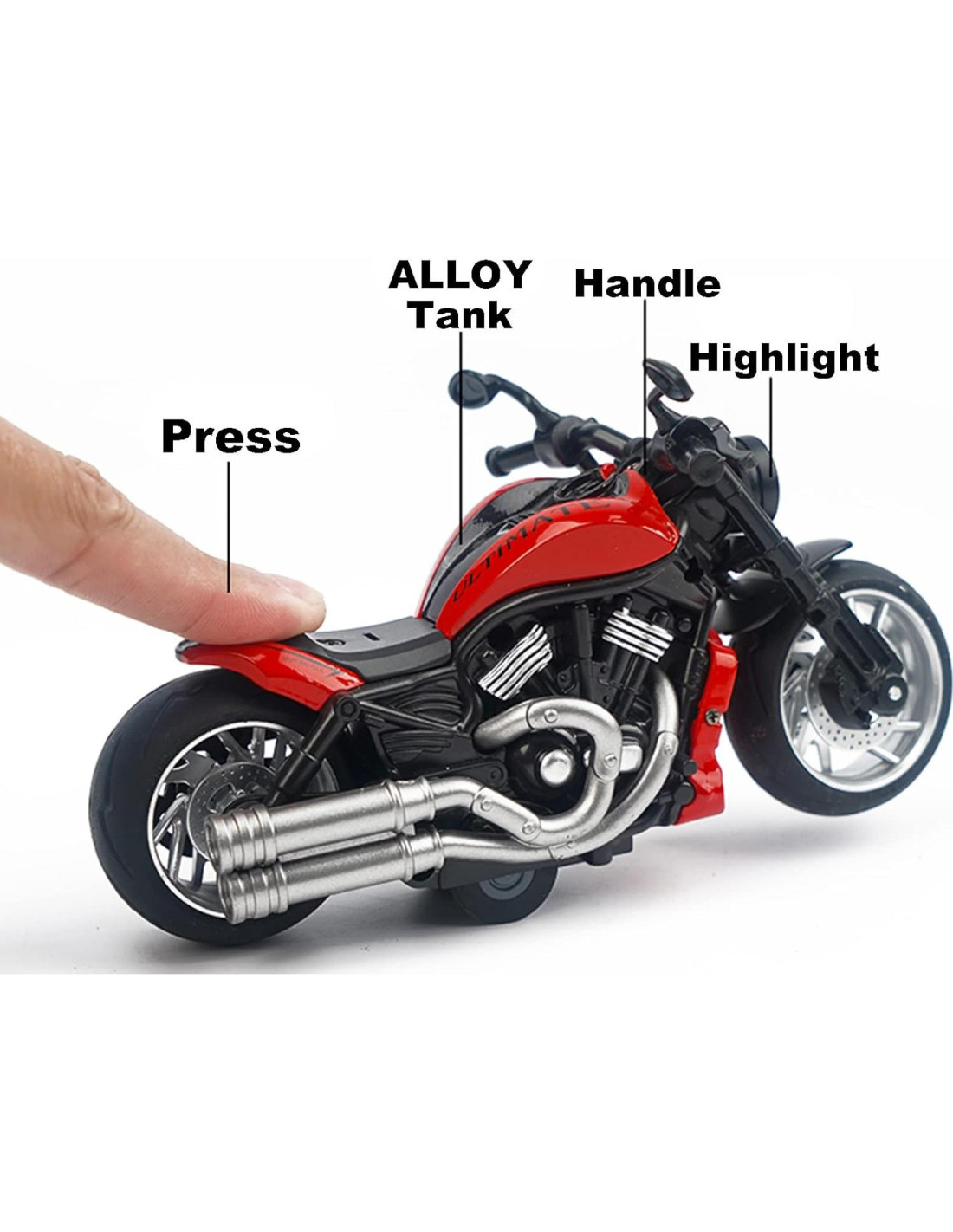 NÚMERO DE ARTÍCULO: NO.MY66-M1235 TAMAÑO DEL EMBALAJE: 6.69*3.14*4.13 pulgadas (17X8X10.5 cm) TAMAÑO DE LOS COCHES: 6.3*2.75*3.14 pulgadas (16X7X8 cm) Esta motocicleta de retroceso es un regalo ideal para las vacaciones para sus hijos y amigos. Intercámbialos: Los niños pueden intercambiar estos modelos de motocicletas de fundición a presión con sus amigos, manteniendo la sensación de novedad sobre estos increíbles juguetes. Coleccionándolos: Hay un total de 27 estilos de este modelo de coche de metal, coleccionarlos todos será muy divertido para sus queridos hijos. Exhiba todos estos 27 estilos en la habitación de sus hijos, ¡es impresionante! Compítalos: Estas motocicletas de fundición a presión son veloces, los niños se reúnen para organizar una carrera, desarrollando el espíritu de equipo y obteniendo mucha alegría. Lista de empaque: 1 * Motocicleta de fundición a presión 3 * Batería (incluida) Nota: ¡No ayude al niño a abrir la rueda y otros accesorios para evitar que se los trague!