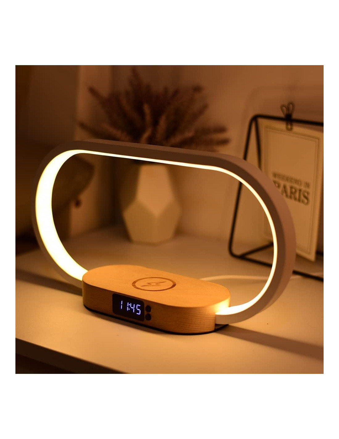 - Función de Reloj -- Función de reloj incorporada, esta lámpara de mesa es conveniente para que verifiques la hora en cualquier momento mientras trabajas, estudias, lees y duermes. La base de la lámpara de mesita está hecha de madera original, no solo como una gran decoración para la habitación, sino también una buena opción para regalos.