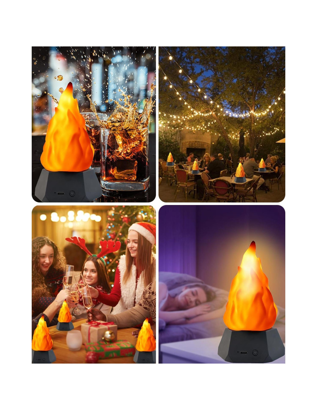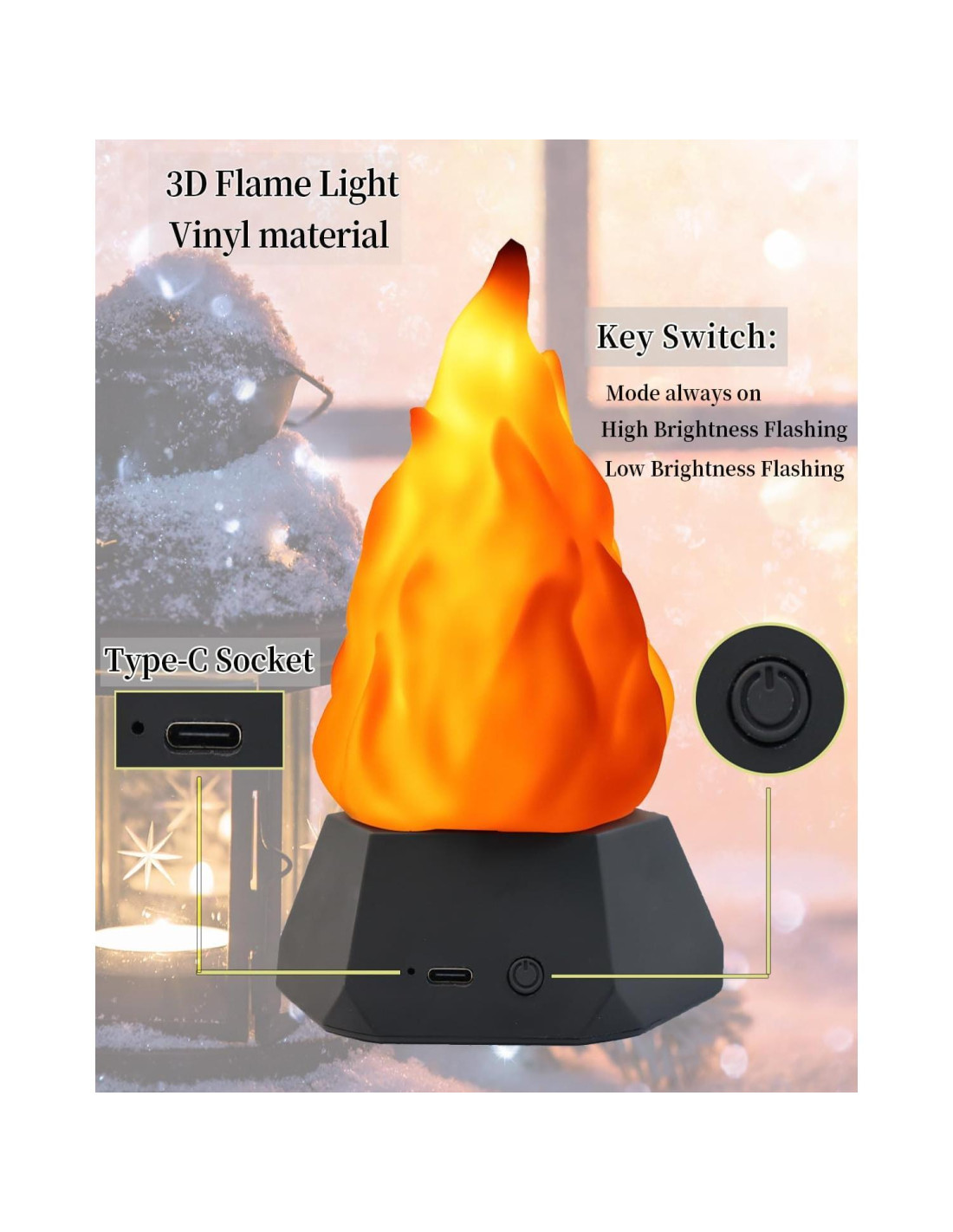 - Carga Flexible: Luces de Llama con un puerto de carga Tipo-C y cable incluido, esta luz de fuego falso permite una fácil carga a través de varios dispositivos sin necesidad de un adaptador de corriente externo, mejorando su funcionalidad como luz nocturna portátil. Es perfecta como linterna de velas recargables sin llama para mayor comodidad.