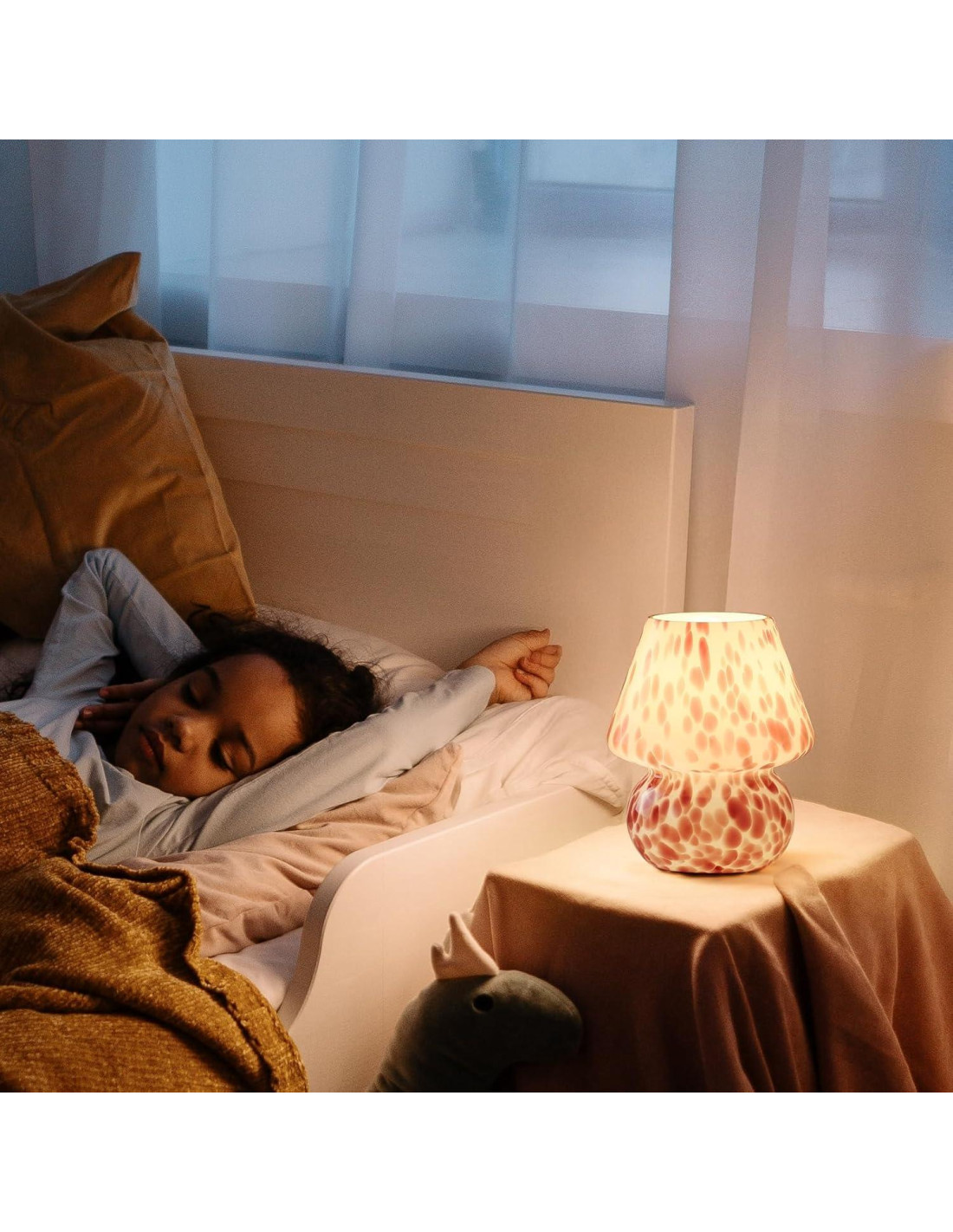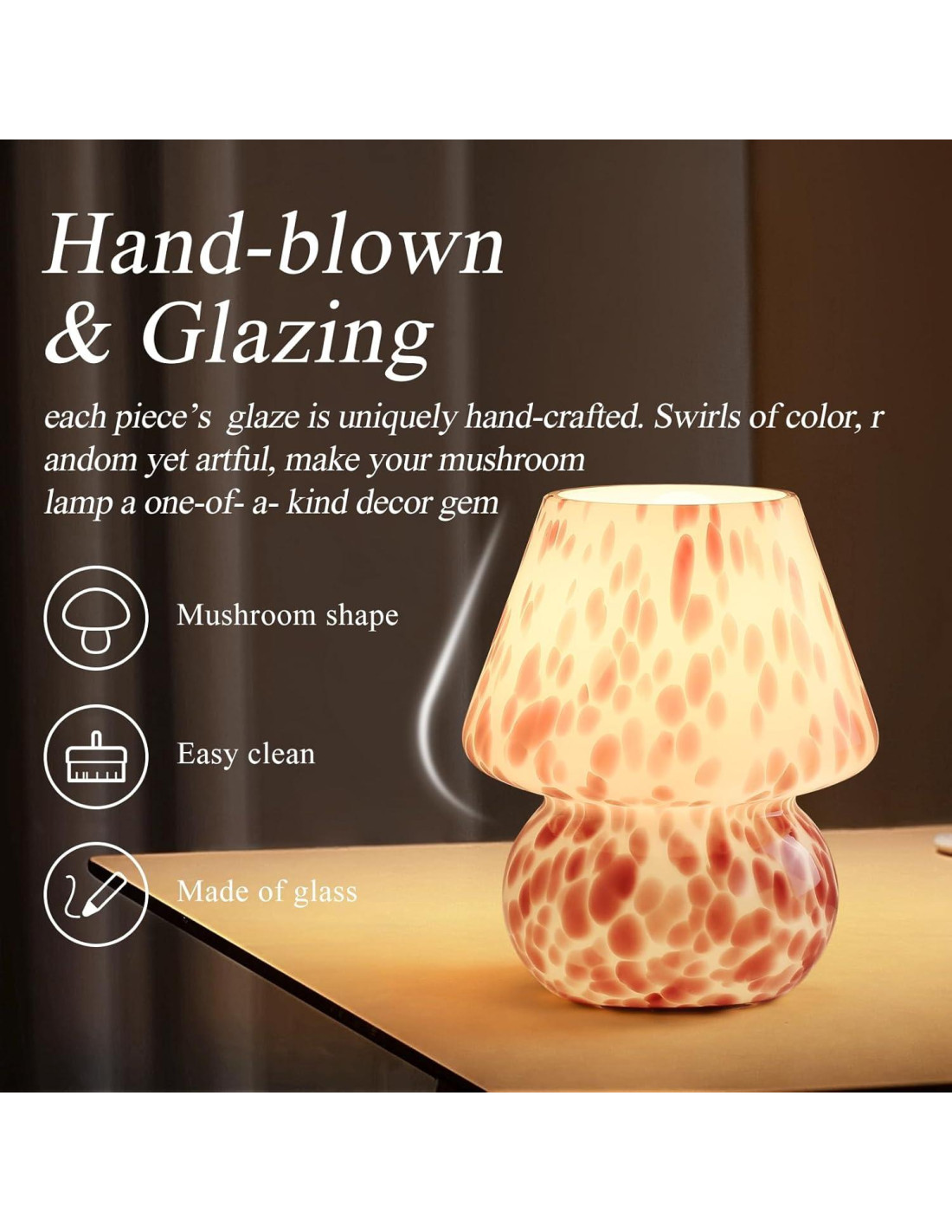 - [Lámpara de Hongo Encantadora] ¡Esta impresionante pieza de vidrio completo está llena de encanto! La lámpara de hongo rosa de GEOVANCY viene con una pantalla y base de vidrio translúcido soplado a mano, elaborada en una divertida forma de hongo. Su diseño exquisito se adapta maravillosamente a cualquier espacio, incluso lámparas pequeñas para espacios pequeños.