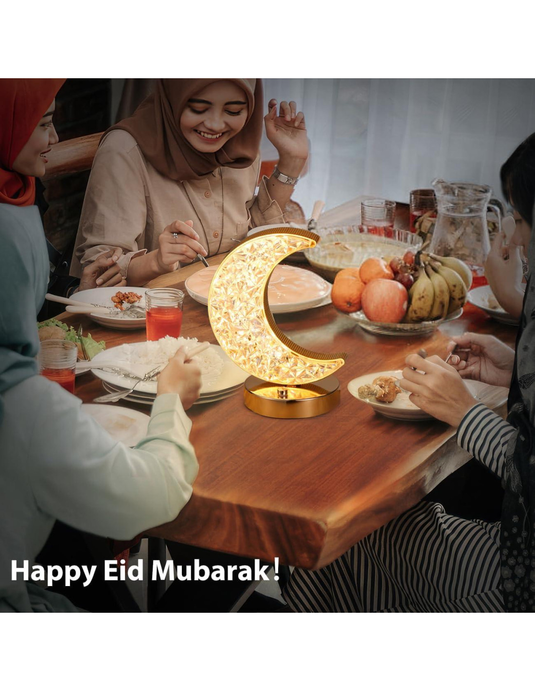 La hermosa lámpara de mesa en forma de luna añadirá un ambiente mágico a tus noches y traerá una serenidad atemporal a tu espacio. Se puede incorporar fácilmente en cualquier estilo de decoración y te dará una sensación inolvidable ya sea en Eid o en cualquier época del año.