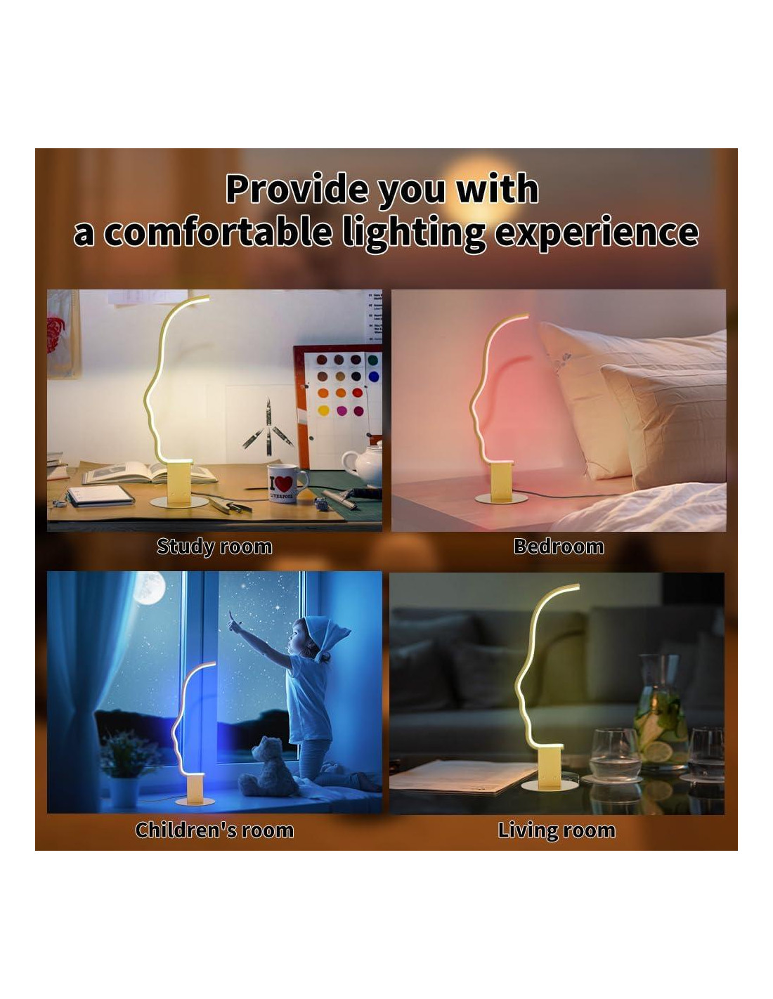 - [Cambio de color RGB multicolor] Las lámparas de escritorio RGB vienen en una variedad de variaciones de color, que se pueden controlar a través de un control remoto para ajustar cualquier brillo o color según tus necesidades, creando una atmósfera cómoda y romántica en casa y permitiéndote expresar libremente tus emociones.