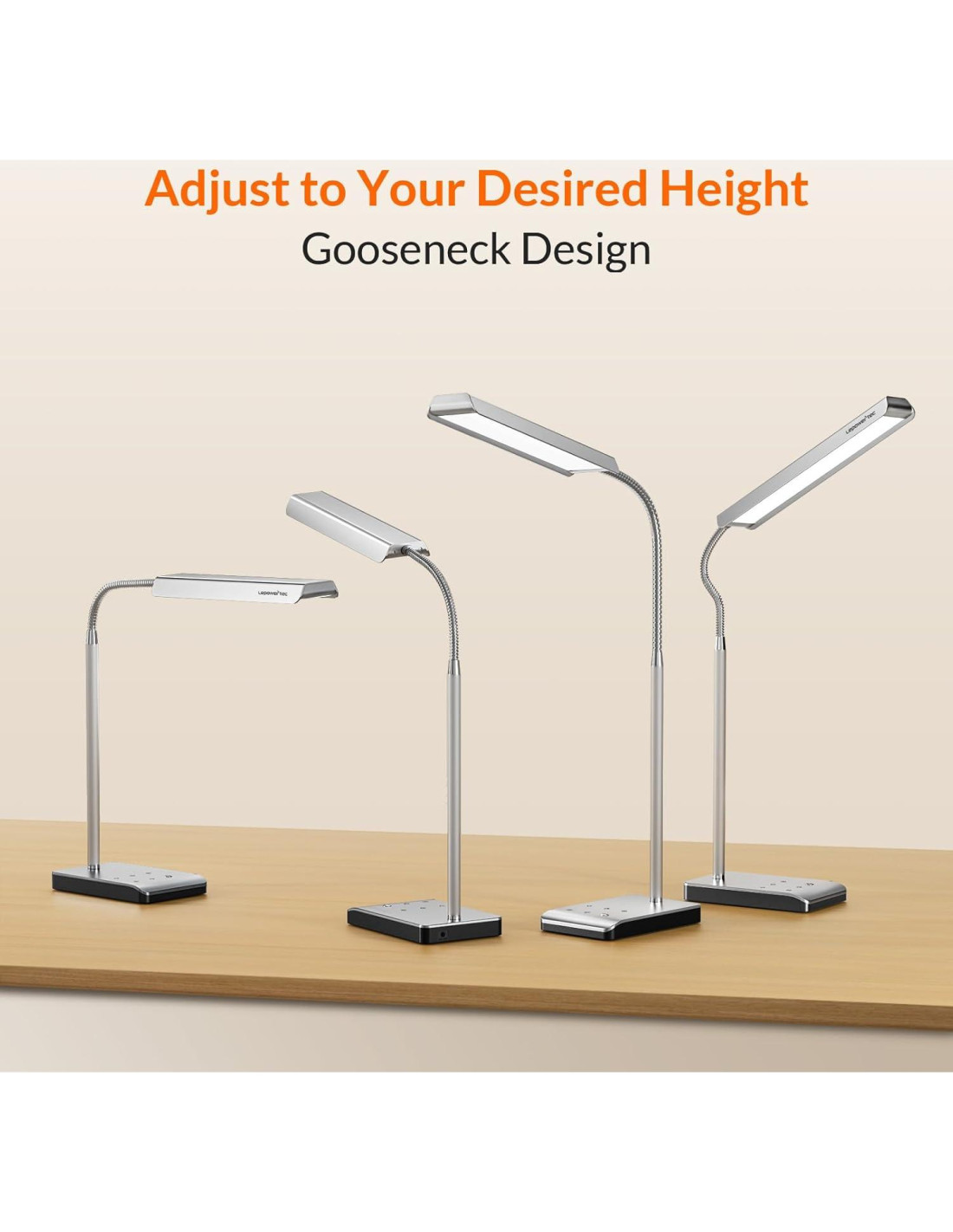 - Control Táctil y Ángulo de Iluminación Flexible: Esta luz de escritorio tiene un panel de control táctil sensible, que ajusta fácilmente la configuración de luz. Las lamparas de escritorio para oficina en casa cuentan con un brazo flexible de metal de 360, que es más flexible y fácil de ajustar en altura y posición de luz.