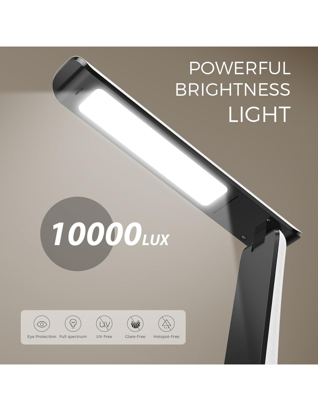 - [LÁMPARA DE TERAPIA 2 EN 1] Con un diseño elegante y moderno, se puede usar tanto como lámpara de terapia de luz como lámpara de escritorio. La luz de terapia imita los colores de la luz solar, ayudando a aliviar la tristeza invernal, regular el sueño, mejorar la concentración, aumentar la energía y reducir la tristeza.