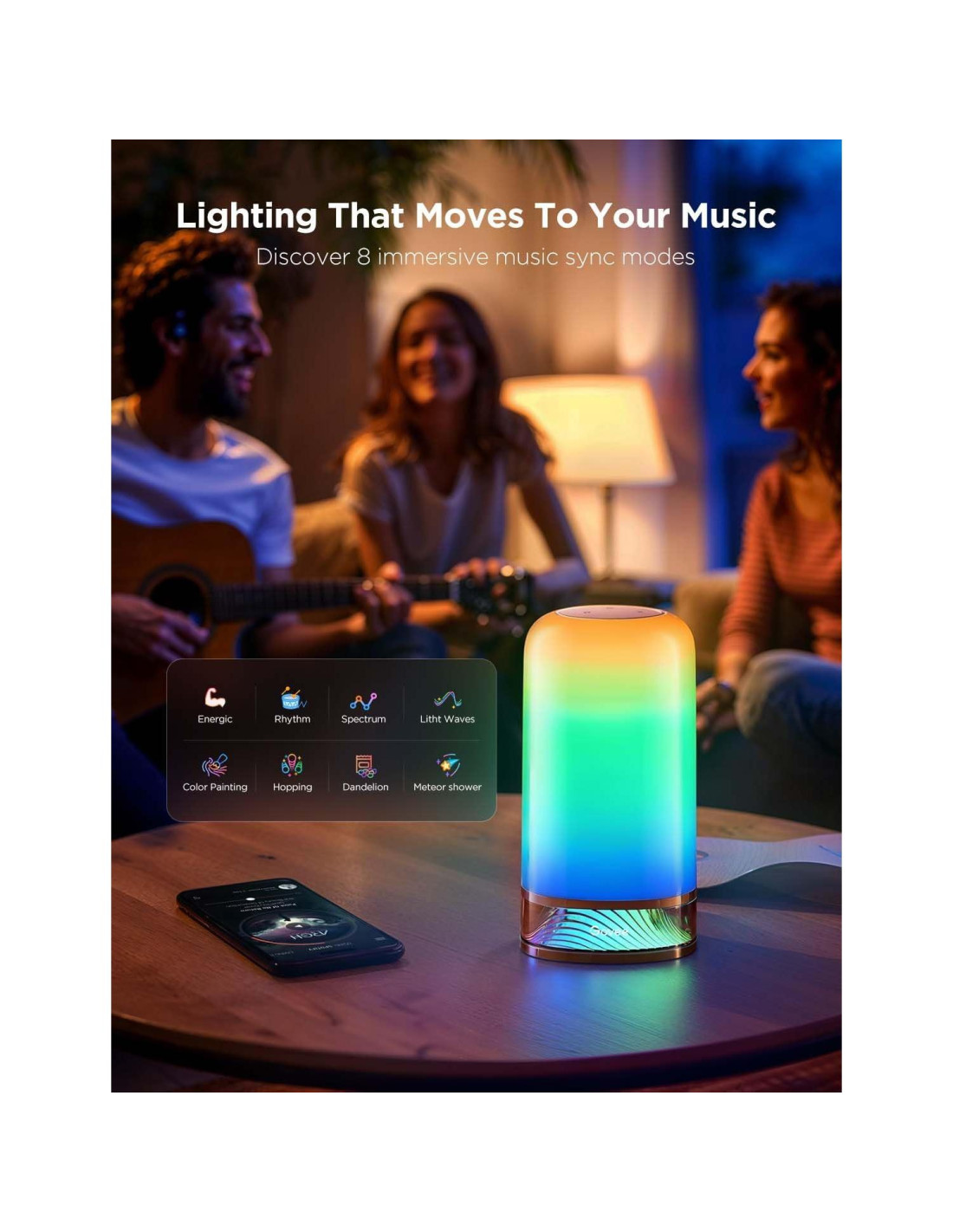 - Modos Preestablecidos Nuevos: Con más de 64 escenas preestablecidas diversas, como San Valentín, y 8 modos de sincronización musical, esta lámpara de mesa inteligente puede enriquecer tu experiencia de fiesta, sumergiéndote en momentos de relajación o entretenimiento.