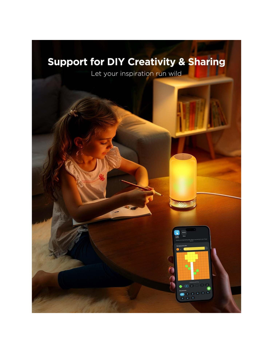- Creación DIY Soportada: Esta luz nocturna inteligente soporta efectos de iluminación personalizados divertidos y compartibles con la App para que los niños expandan su imaginación y los adultos creen sorpresas brillantes para fiestas y aniversarios.