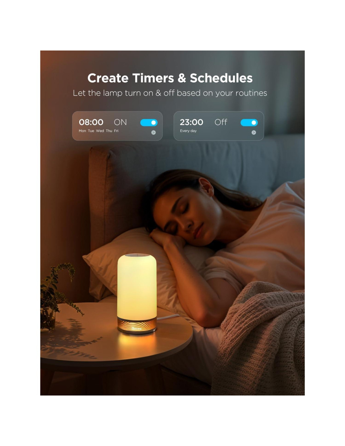 - Tecnología RGBICWW y Iluminación Mejorada: Disfruta de exhibiciones multicolores, 500lm de brillo (más alto que modelos anteriores), y blancos cálidos/fríos ajustables de 2700k-6500k. Con Iluminación y Diseño Mejorados, un festín visual puro cada vez que se enciende la lámpara de mesa inteligente.