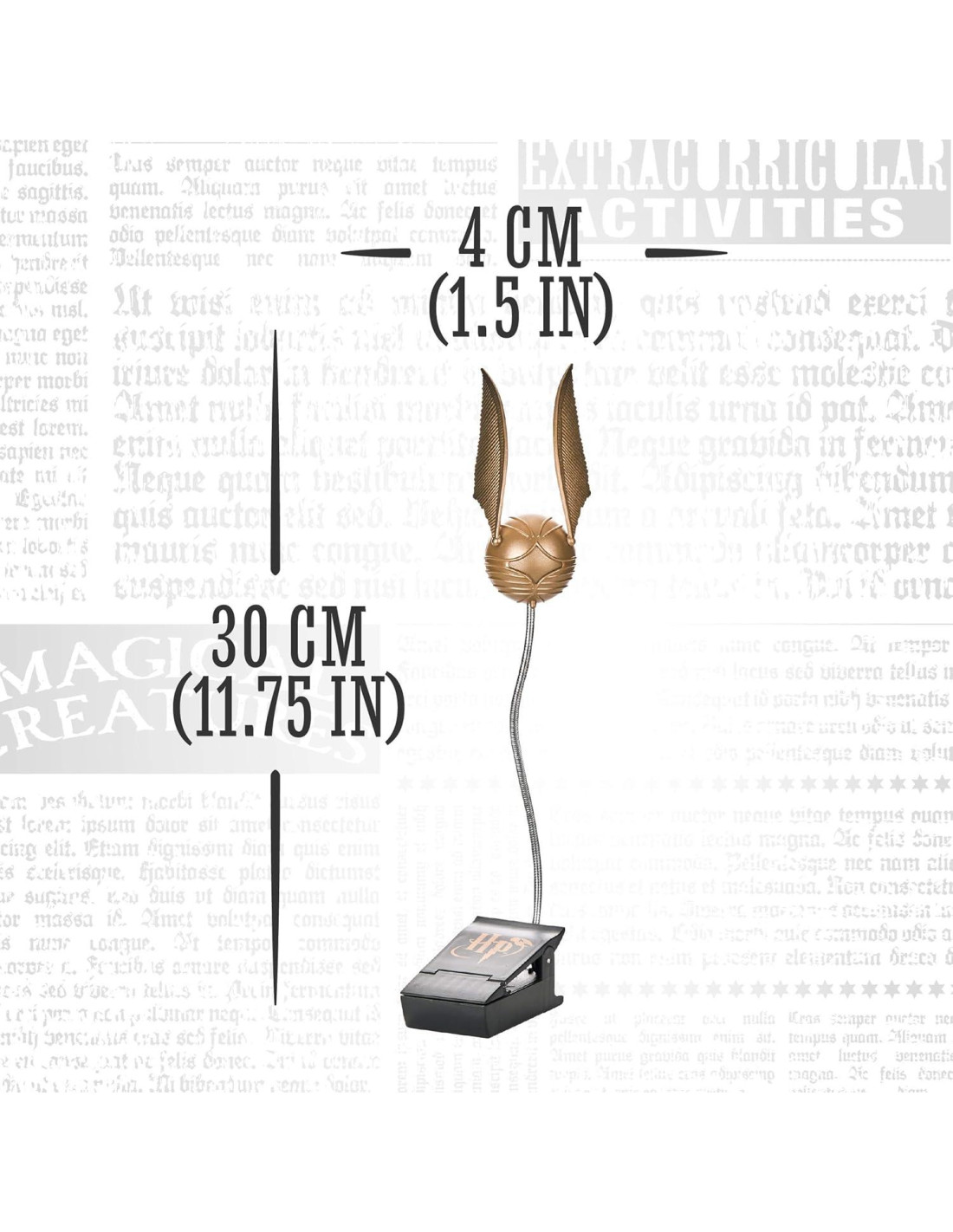 - LÁMPARA DE LIBRO: Diseñada como el Golden Snitch que los jugadores buscan en Quidditch, la luz se sujeta a tu libro o revista, con el Snitch flotando sobre tu página dejándote con la luz de lectura perfecta.