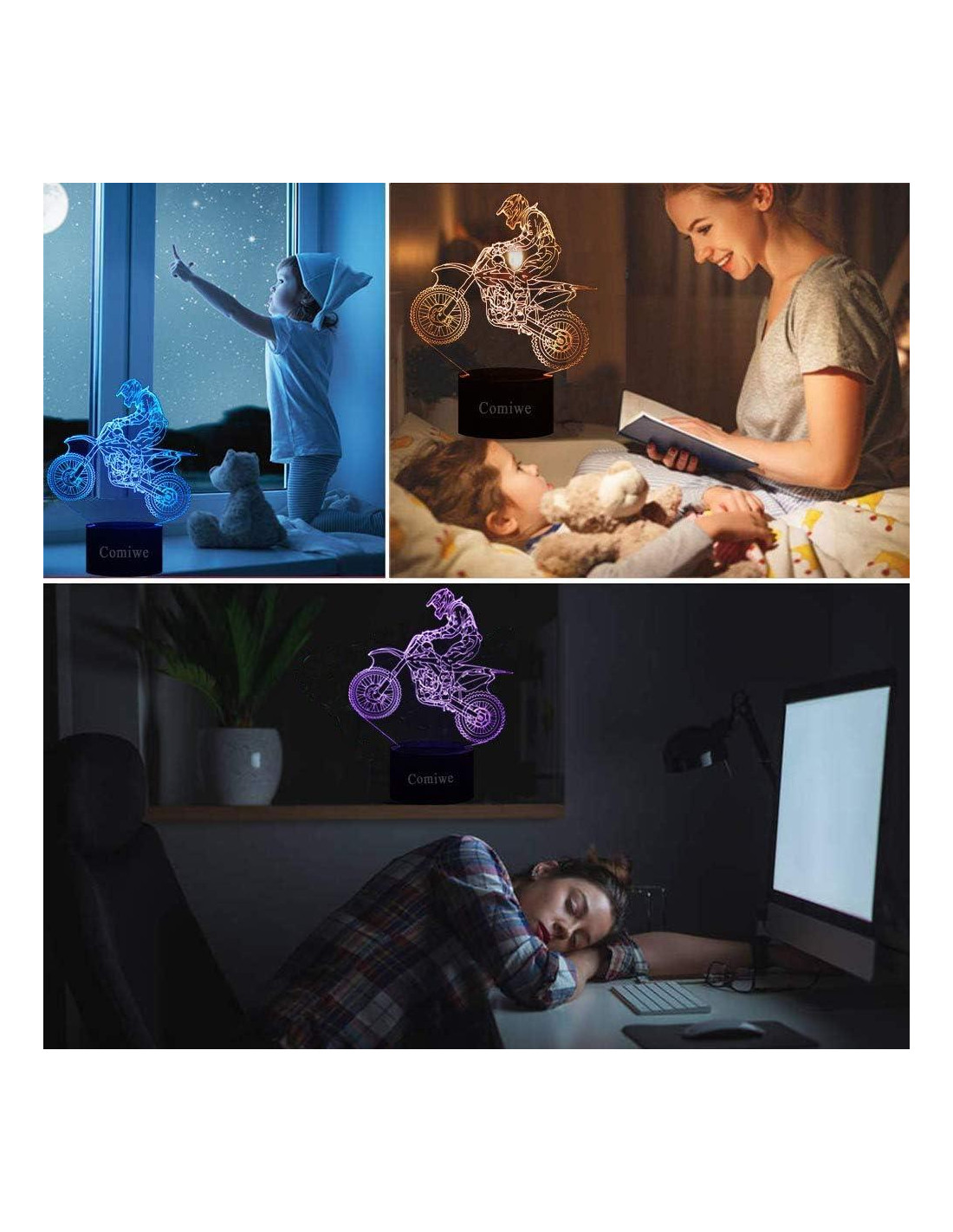 - [Regalo y Sorpresa Original] Regalo para todas las edades y festividades, Navidad, Año Nuevo, Cumpleaños, Día del Niño, Graduación, Acción de Gracias, Aniversario para esposa o esposo, Día de San Valentín, Día del Padre, Día de la Madre, Inauguración de Casa, Promoción publicitaria, Atracción turística. Muy apreciado por los amantes del motocross. NOTA: 3D SOLO EFECTO VISUAL, LA LÁMPARA EN SÍ MISMA ES PLANA.