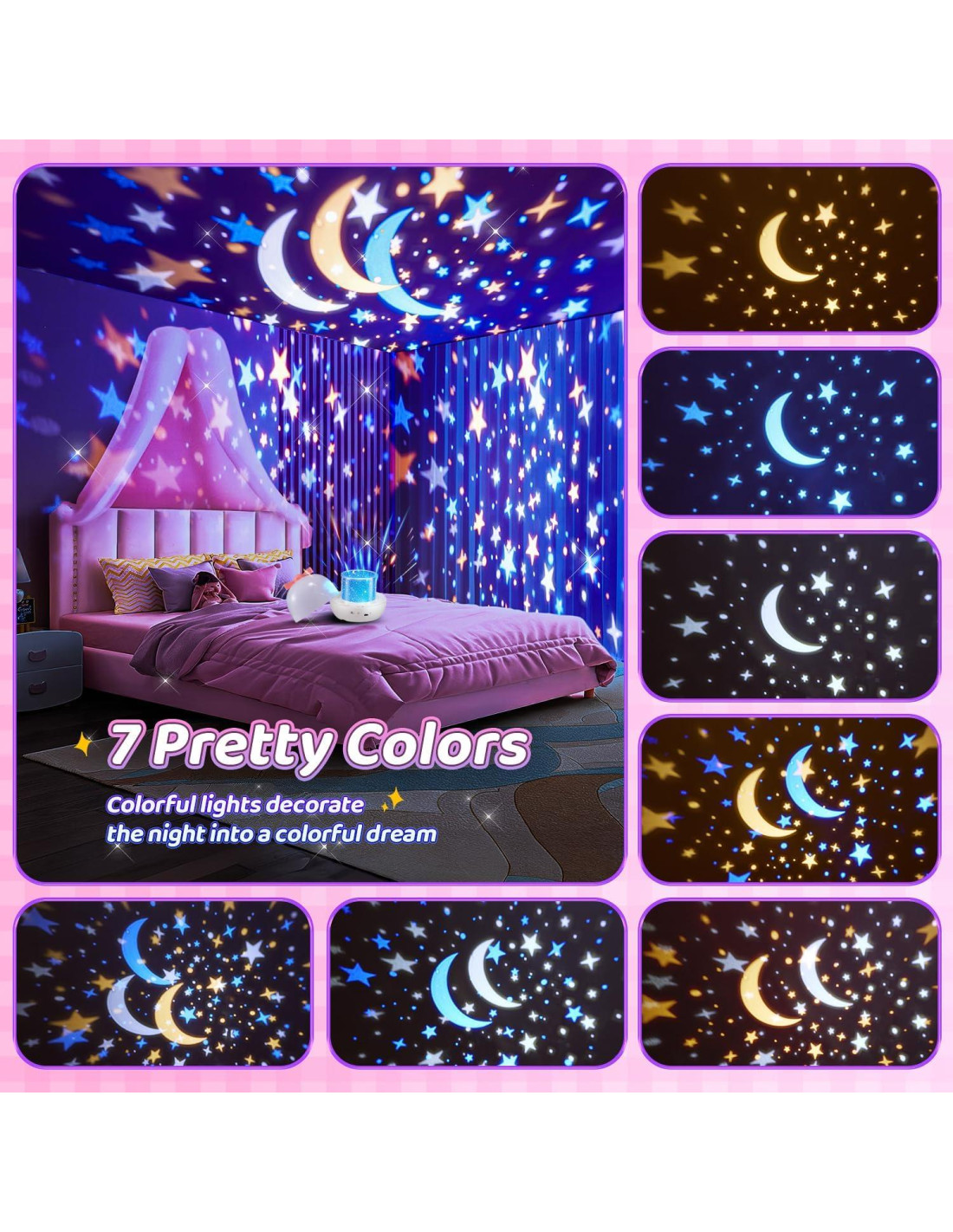 - REGALOS MUY LINDOS PARA NIÑAS PEQUEÑAS: ¿No sabes qué comprar para cumpleaños o Navidad? El lindo proyector de luz nocturna para niñas es un regalo ideal para tus lindas niñas. ¡Tus adorables niñas amarán las estrellas coloridas, la luz de la luna, bailar con decoraciones de unicornios lindos, tener la lámpara de la princesa sirena que cuenta cuentos antes de dormir, y tener a las medusas delfín acompañando a tus niñas para dormir! No dudes, ¡démosle a tu pequeña linda la linda luz de estrellas y la decoración de habitación de unicornio para niñas como regalos de Navidad, regalos de cumpleaños, regalos de unicornio para niñas, regalos de princesa, regalos de sirena, regalos para niñas! Las luces de estrellas de unicornio para la decoración de la habitación también hacen de la lámpara de luz nocturna para niñas / proyector de Navidad para la habitación de niñas.