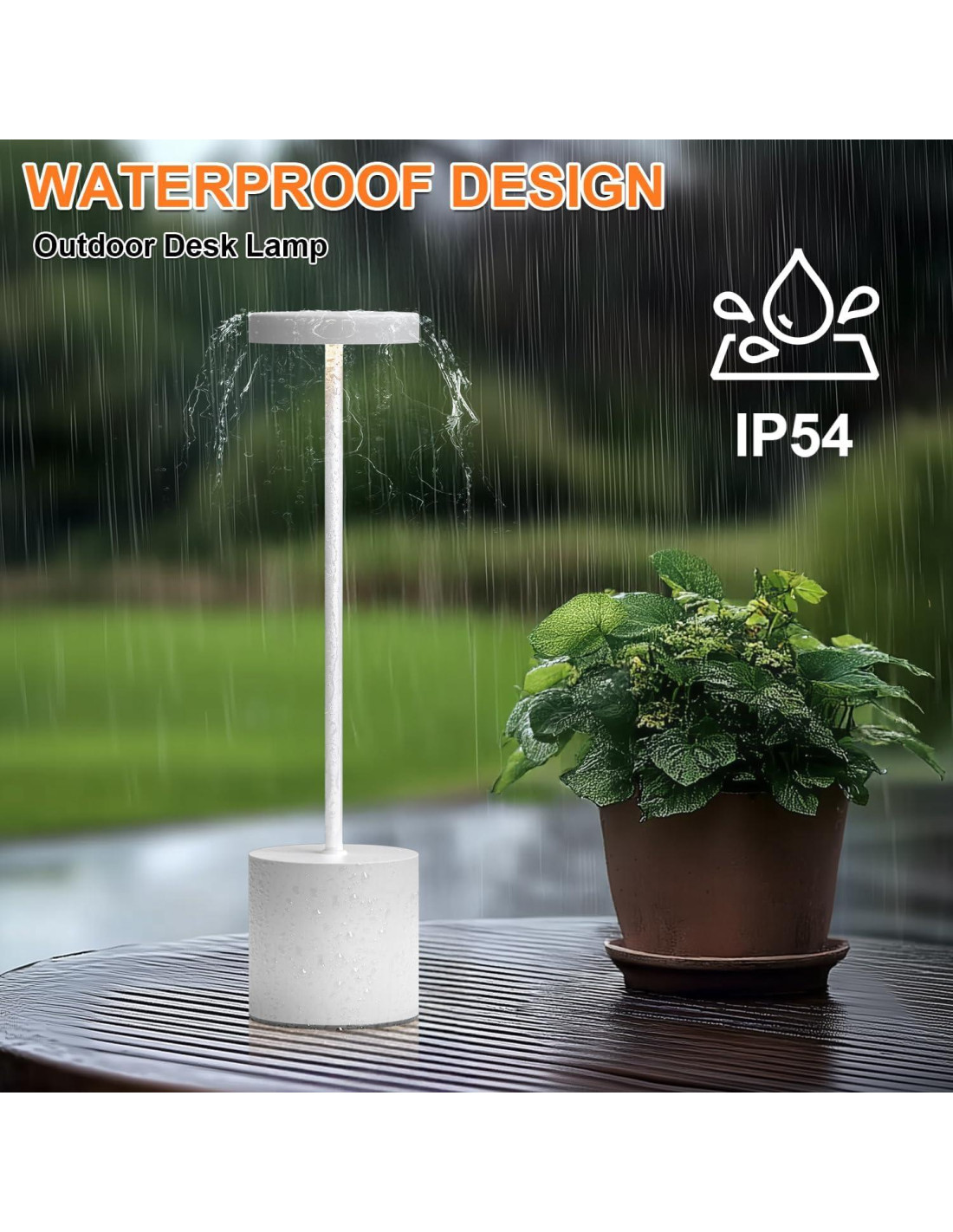 - RESISTENTE AL AGUA-No dejes que las salpicaduras detengan tu estilo. Con resistencia al agua IP54, esta lámpara de mesa recargable es segura para espacios húmedos como baños o cocinas, y lo suficientemente resistente para patios o balcones. Úsala con confianza como lámpara para mesitas de noche, lámpara de cabecera, o incluso una lámpara de mesa exterior para cenar bajo las estrellas. Esta lámpara está diseñada para rendir, llueva o truene.