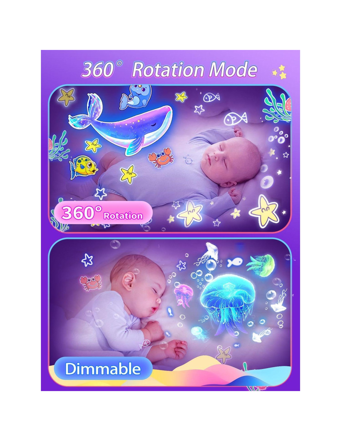 - 21 JUEGOS DE PELÍCULAS: El proyector de luz nocturna para bebés tiene 21 juegos de películas de proyección, incluyendo varios temas como ballenas, medusas, cielo estrellado, etc. Pueden proyectar magníficos patrones en el techo y las paredes para crear una atmósfera única.