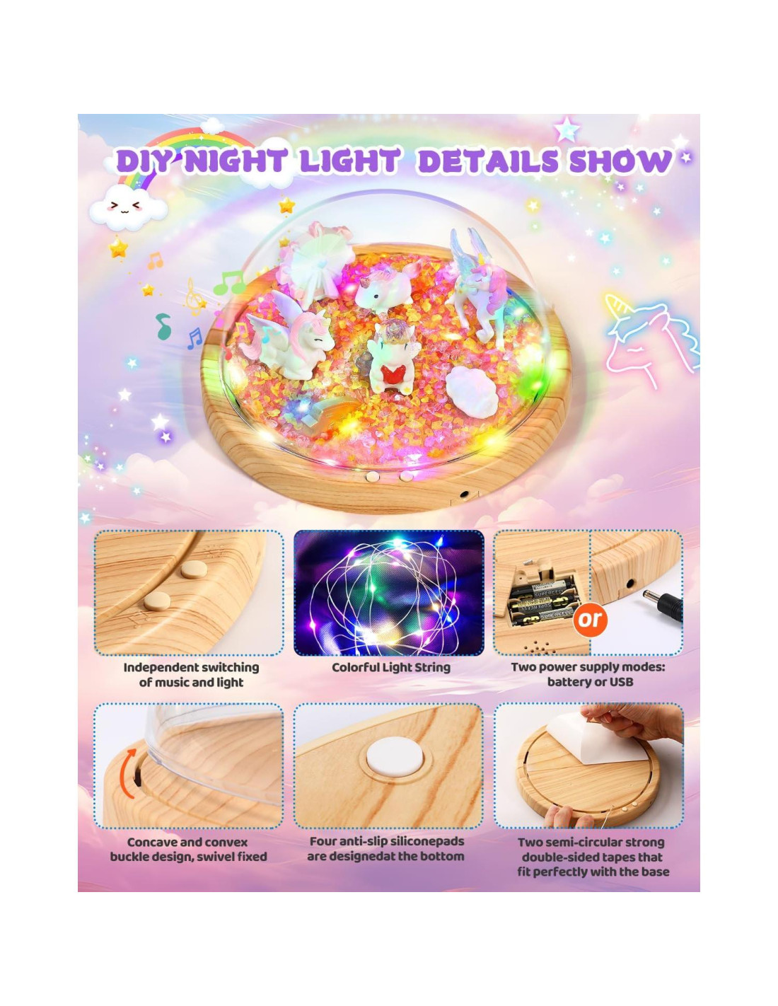 - Disfruta de la diversión del bricolaje: Los kits de bricolaje para niños contienen todo lo que necesitas para hacer la luz nocturna de unicornio, los niños pueden personalizar la luz nocturna de manualidades de la manera que deseen, y cuando el proyecto de luz nocturna esté completo, se sentirán muy orgullosos de sí mismos y maravillados por la belleza y la magia de la luz. Los niños estarán más felices cuando suene la música, las 12 piezas de música se pueden cambiar según sus propias preferencias, dejando que los niños disfruten de este festín de luces y música