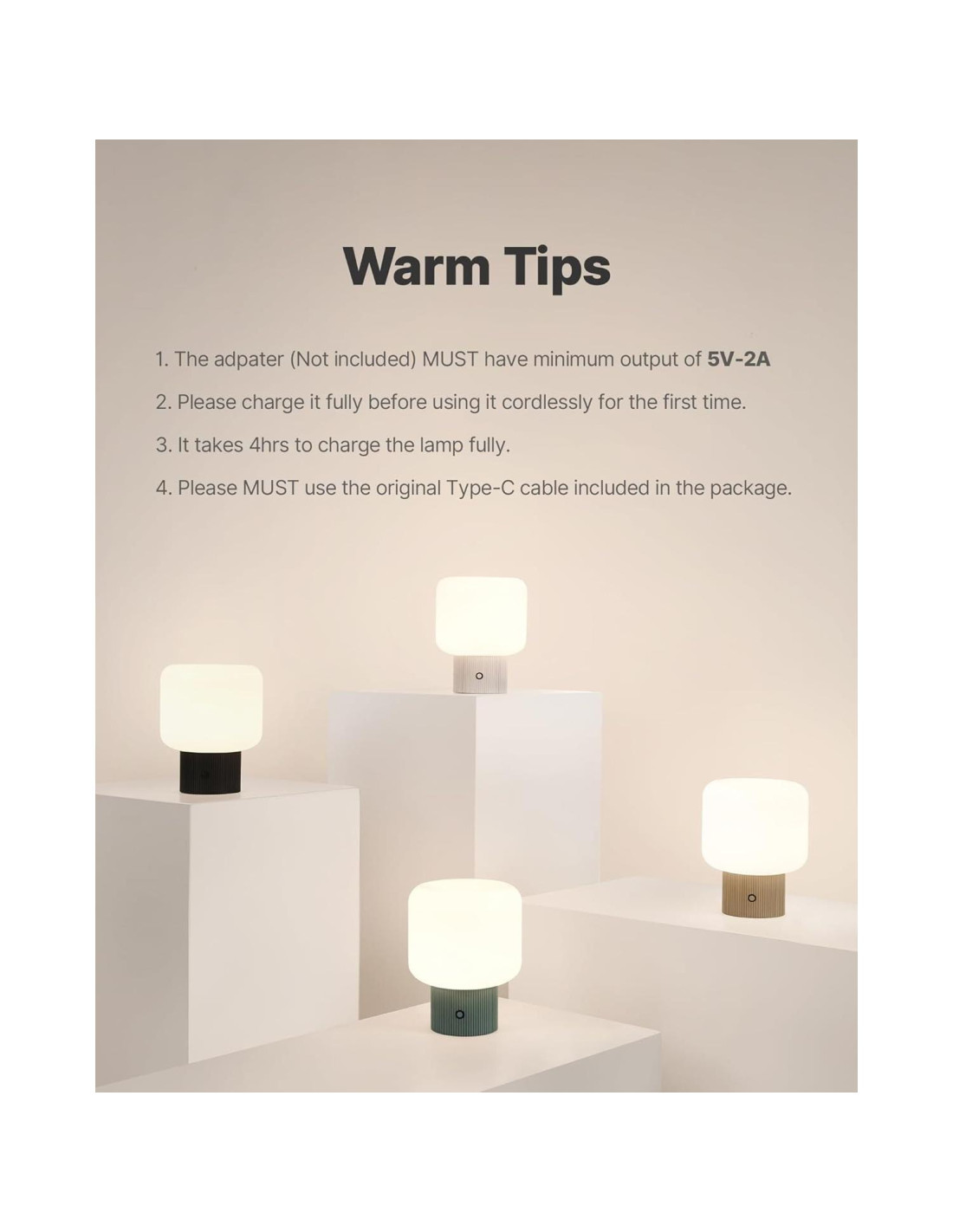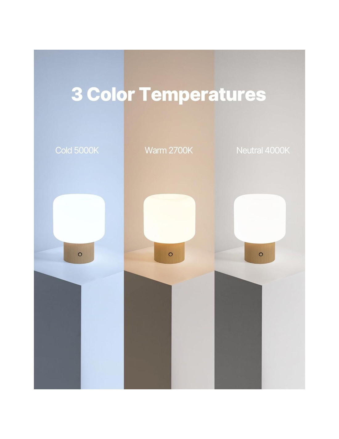 - Regulación Sin Escalones y 3 Temperaturas de Color: Equipado con un botón de control táctil, esta lámpara de mesa recargable te permite personalizar sin esfuerzo tanto el brillo como la temperatura de color; Disfruta de un amplio espectro de configuraciones de brillo del 6% al 100%, asegurando que esta lámpara de noche entregue una iluminación óptima para diversos propósitos; Además, nuestra lámpara de mesita de noche táctil ofrece 3 opciones de temperatura de color; Selecciona entre 2700K para un ambiente cálido, 4000K para luz natural, o 5000K para una iluminación refrescante.
