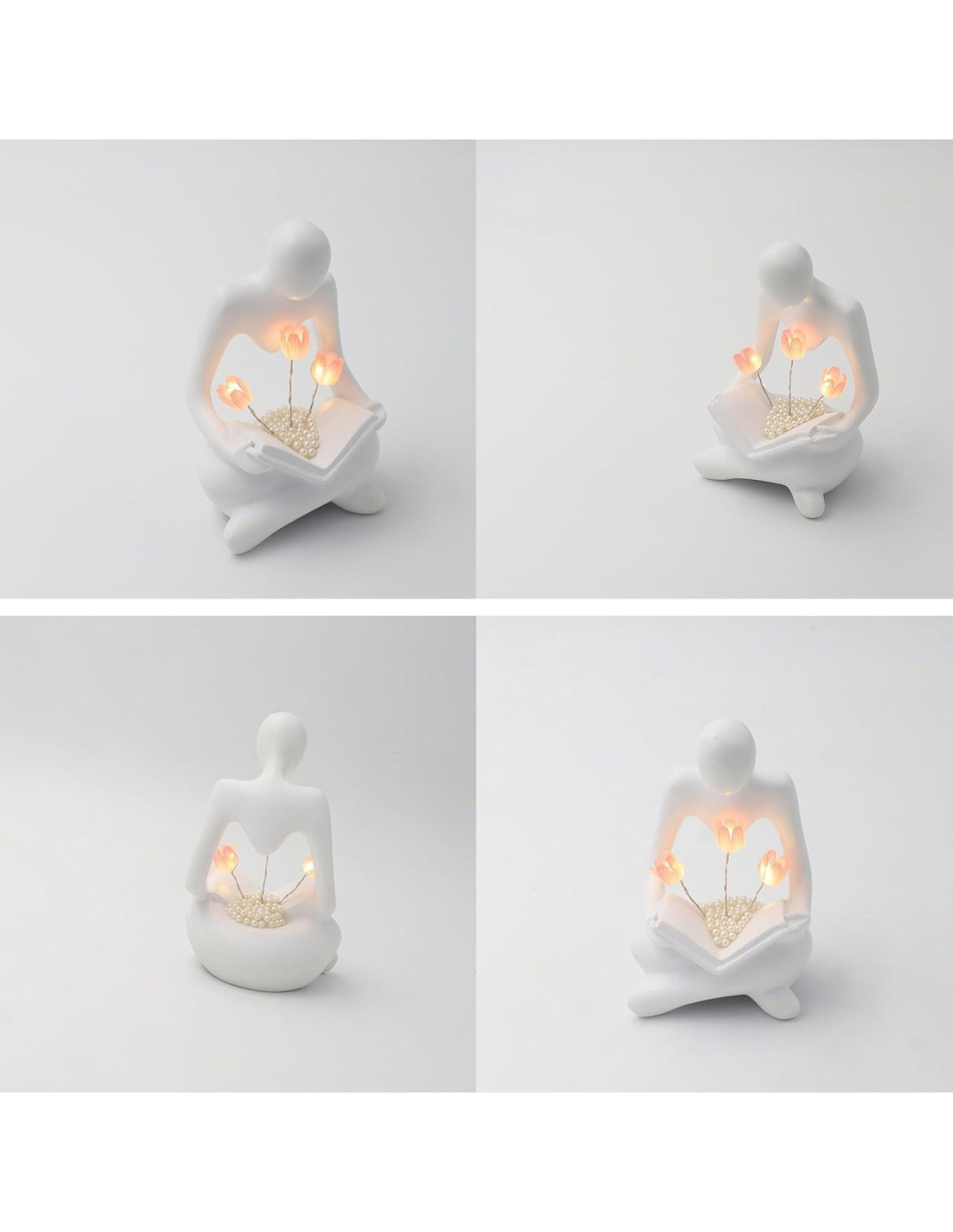 - [Material Premium] La escultura representa a una mujer absorta en la lectura, 3 tulipanes LED crecen de libros de perlas. Este cuerpo principal está hecho de resina de alta calidad, diseñado con una estructura fuerte, fundición profesional, meticuloso, y puede ser utilizado durante mucho tiempo.