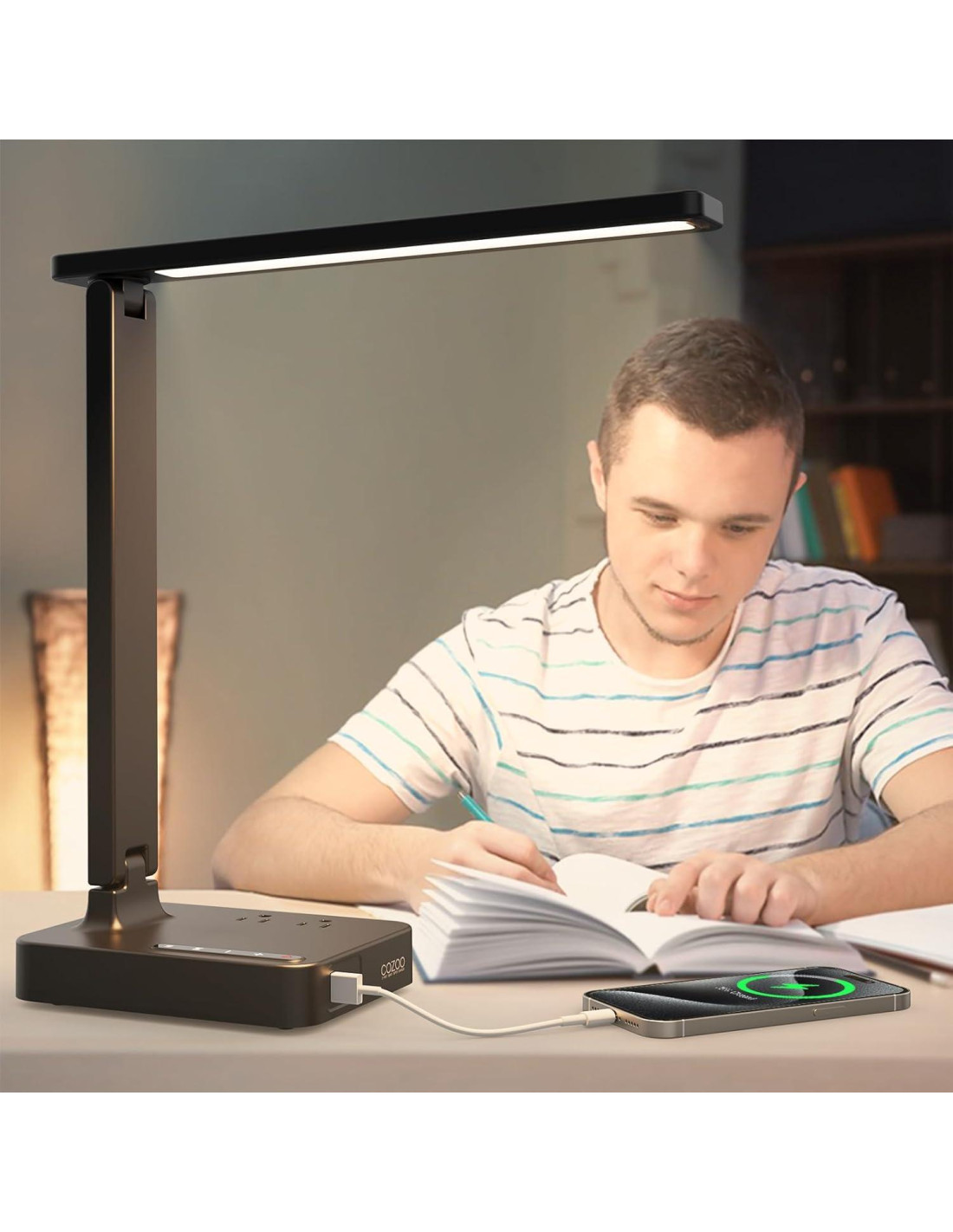 - Múltiples Funciones: 2 Puertos de Carga USB (5V / 4.5A), Puertos Tipo C, 2 Enchufes de Salida (1250W), función de memoria, 3 modos de iluminación, 3 niveles de brillo, temporizador de 60 minutos, lámpara de oficina, luz nocturna, lámpara de trabajo, lámpara de brazo para dormitorio, lámpara de lectura, lámpara de computadora. Esenciales para dormitorios universitarios para estudiantes.