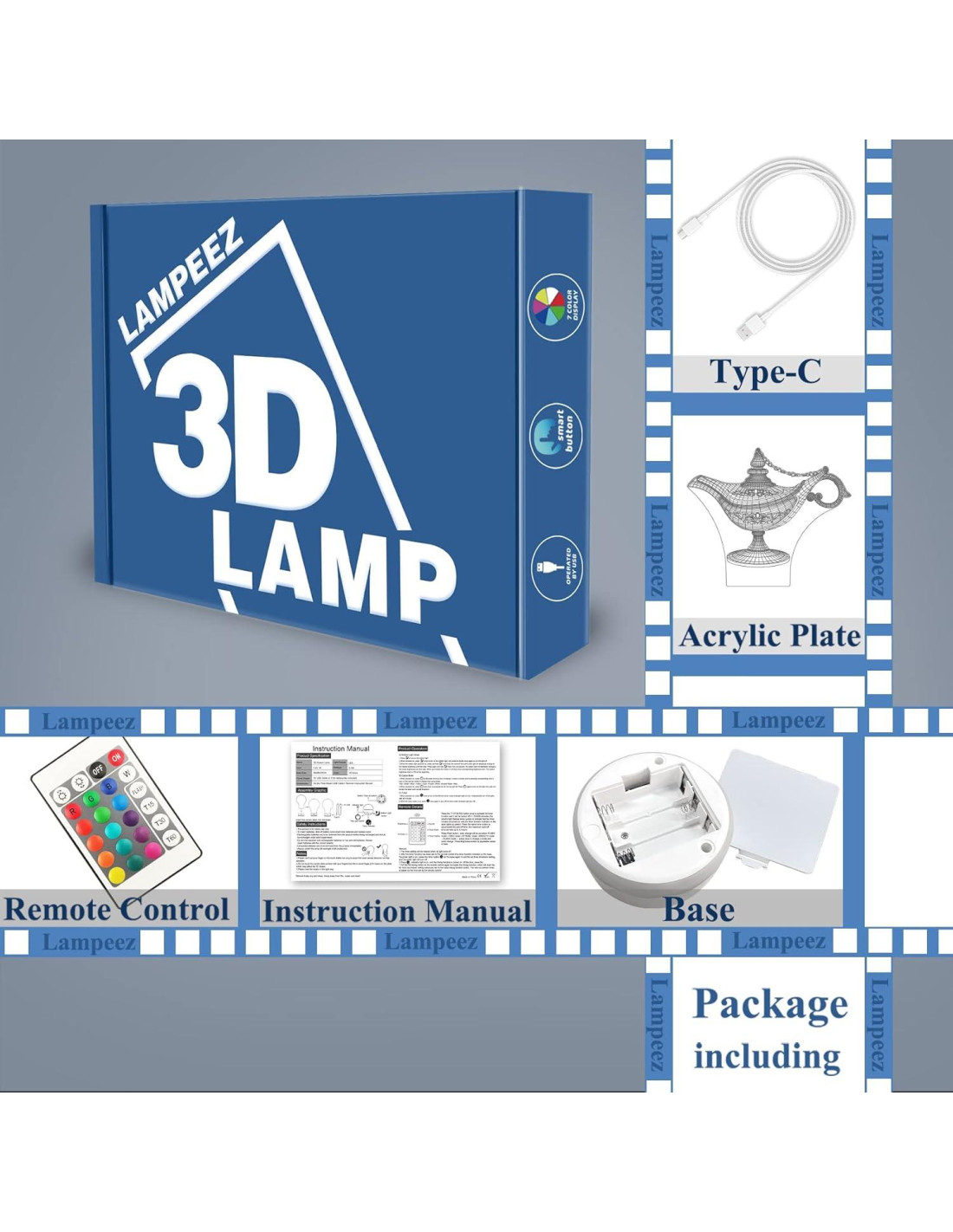 - Lo que obtienes: 1 x base LED, 1 x hoja acrílica, 1 x cable USB, 1 x control remoto, 1 x manual del usuario y servicio al cliente amigable