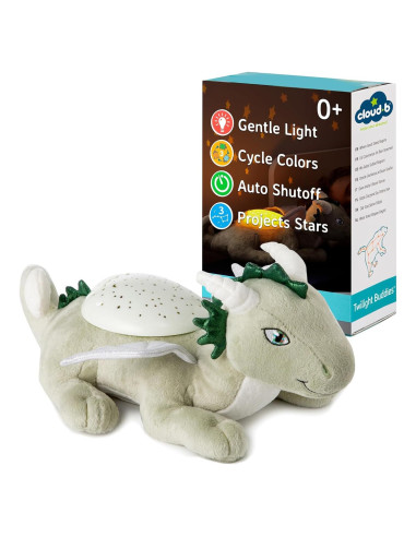 ¡Más que una luz nocturna versátil! Ilumina el camino hacia un buen sueño con los adorables y reconfortantes Twilight Buddies que tienen el mismo efecto calmante que nuestra Tortuga Crepuscular. Elige el personaje favorito de tu hijo y antes de que te des cuenta, ¡estarán pidiendo la hora de dormir! Simplemente coloca este pequeño peluche en el suelo en el centro de una habitación y apaga las luces para obtener el efecto etéreo de dormir bajo las estrellas. Además, las tres opciones de color relajantes crean ambientes únicos asociados con estados de ánimo positivos. ¡Ideal para niños pequeños y niños! No más miedo a la oscuridad. Ayuda a aliviar el miedo de los niños a la oscuridad proyectando un cielo estrellado en los techos y paredes del dormitorio. ¡Escondidos dentro de la proyección estrellada relajante están la luna y 3 constelaciones! También selecciona su color favorito entre verde, azul y ámbar, o simplemente utiliza la opción de rotación automática. Un divertido compañero de peluche durante el día y una luz reconfortante por la noche, Twilight Buddies será uno de los mejores amigos de tu hijo para jugar, dormir, en cualquier momento y lugar. En Cloud b tomamos el sueño muy en serio. Nuestra colección de juguetes de peluche musicales y luces nocturnas ha recibido numerosos reconocimientos tanto de profesionales como de padres. Nuestros productos están diseñados para ayudar a calmar y tranquilizar a los niños para que se duerman mejor: