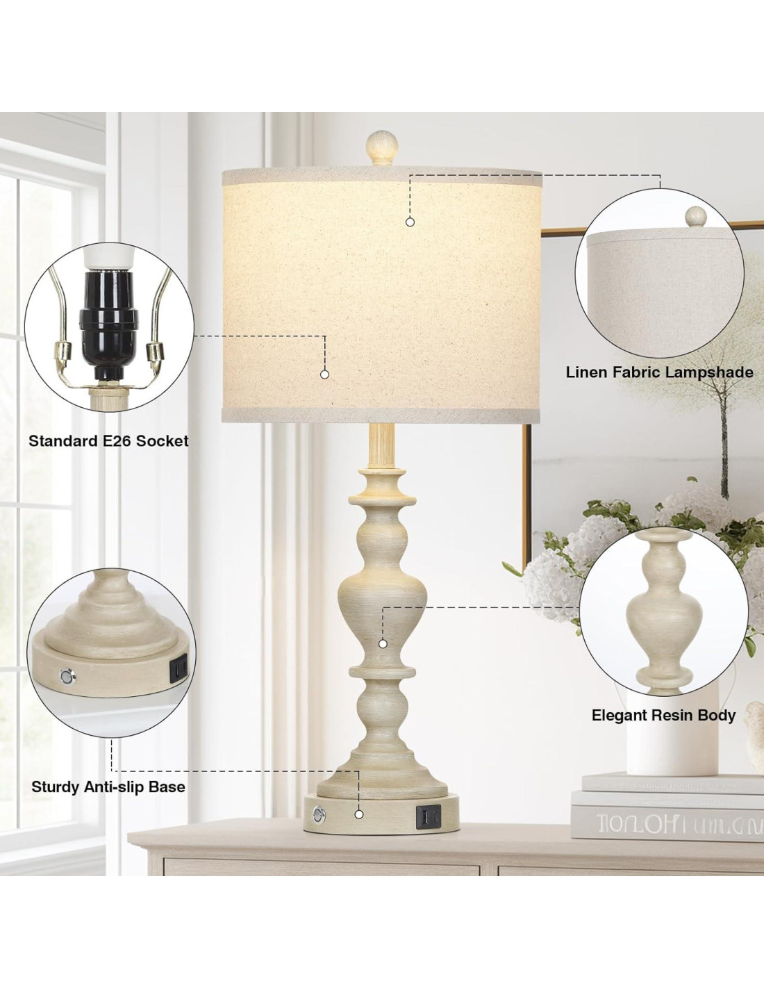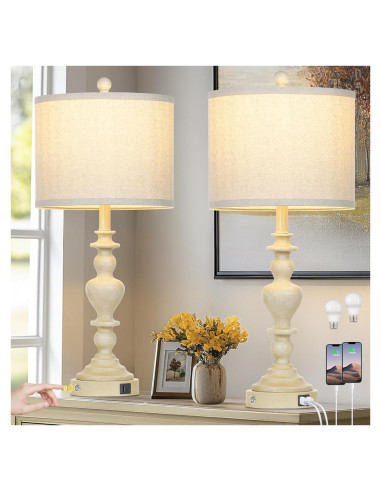 - Lámparas clásicas vintage rústicas de granja: Las lámparas de dormitorio están hechas de resina beige lavada de estilo antiguo y vienen con pantallas de tela de lino (se requiere ensamblaje), presentando texturas vintage únicas que ofrecen un atractivo estético retro encantador. El diseño clásico de las lámparas aporta una sensación elegante y sofisticada a tu espacio, complementando fácilmente varios estilos de interiores como nórdico, simple, campestre y minimalista. Las lámparas de granja son perfectas para mesas auxiliares, escritorios, al lado de sofás y tocadores.