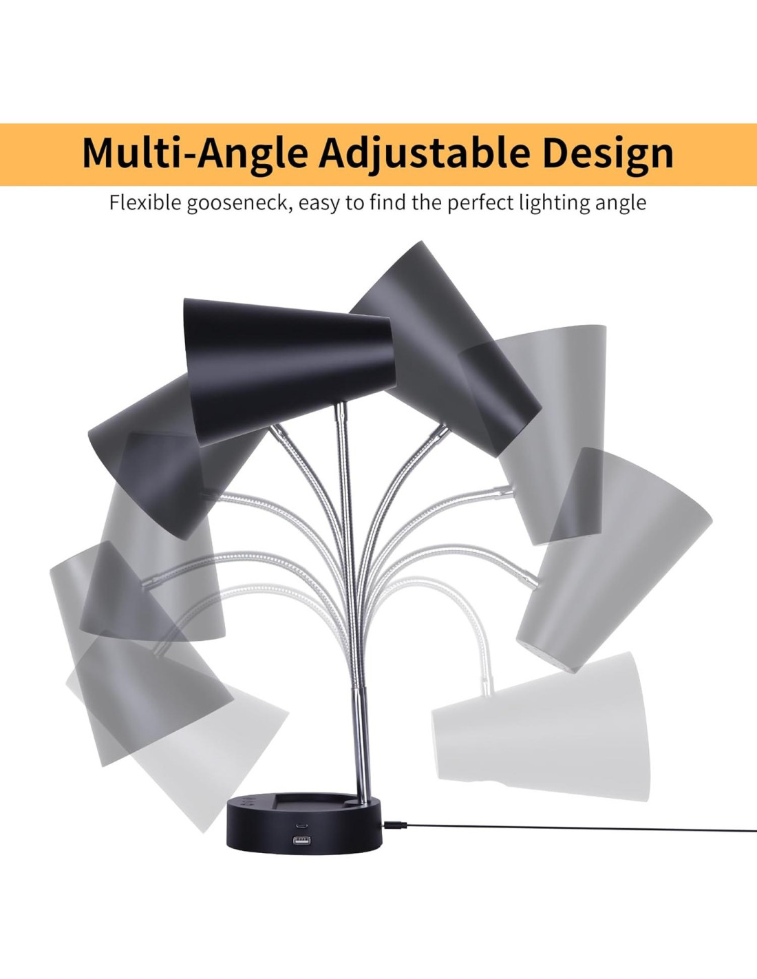 - Lámpara de Escritorio Ajustable en Múltiples Ángulos: Lámpara de Escritorio Pequeña Ajustable con Manguera Flexible. Esta lámpara de mesa de metal ajustable con cuello flexible viene con un cuello infinitamente flexible, que puede ajustar libremente el ángulo entre el brazo y el soporte de la lámpara, y una almohadilla de goma completa para evitar que tu lámpara de cuello flexible se deslice.
