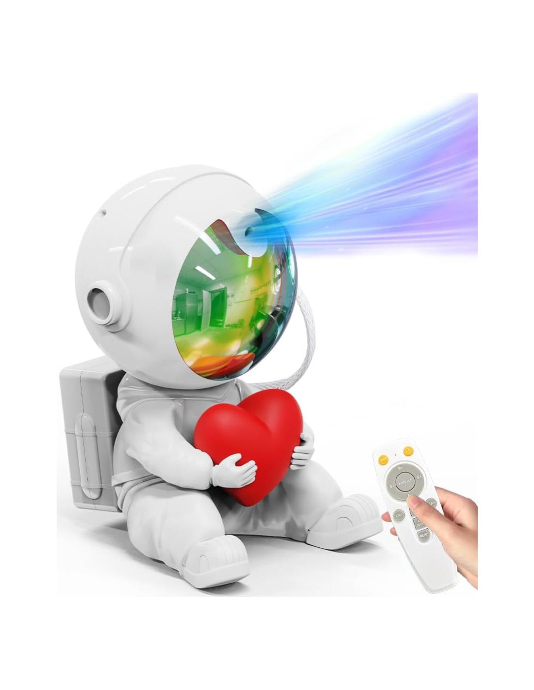 - [Diseño Innovador de Apariencia Única]: Este proyector Aurora adopta la apariencia de un astronauta y un diseño de corazones abrazados para hacer eco del tema de la Vía Láctea, brindándote un efecto visual de ensueño. La cabeza del astronauta soporta rotación de 360 (0), lo que facilita ajustar el ángulo de proyección de la aurora, y puede proyectarse en cualquier lugar en una posición fija sin restricciones, no solo es un proyector de estrellas astronauta, sino también una buena decoración.