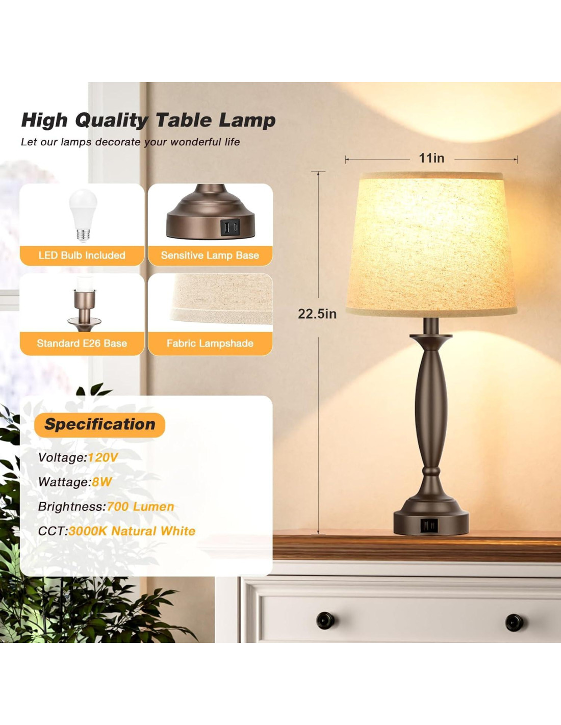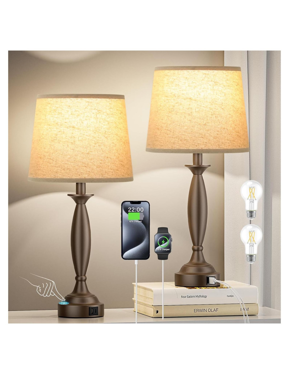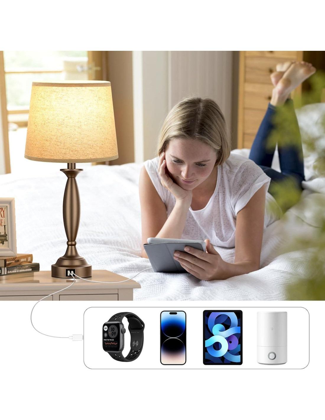 - [USB C y USB A Mejorados] Este juego de lámparas de mesa para sala de estar de 2 está diseñado con un puerto de carga USB-C (5V/2.1A) y un puerto USB-A en la base de las lámparas de mesita de noche, puedes cargar cuatro dispositivos a la vez, perfecto para cargar teléfonos, kindles, tabletas, relojes, humidificadores y otros dispositivos eléctricos. El puerto USB funciona ya sea que las lámparas de mesa estén encendidas o apagadas.