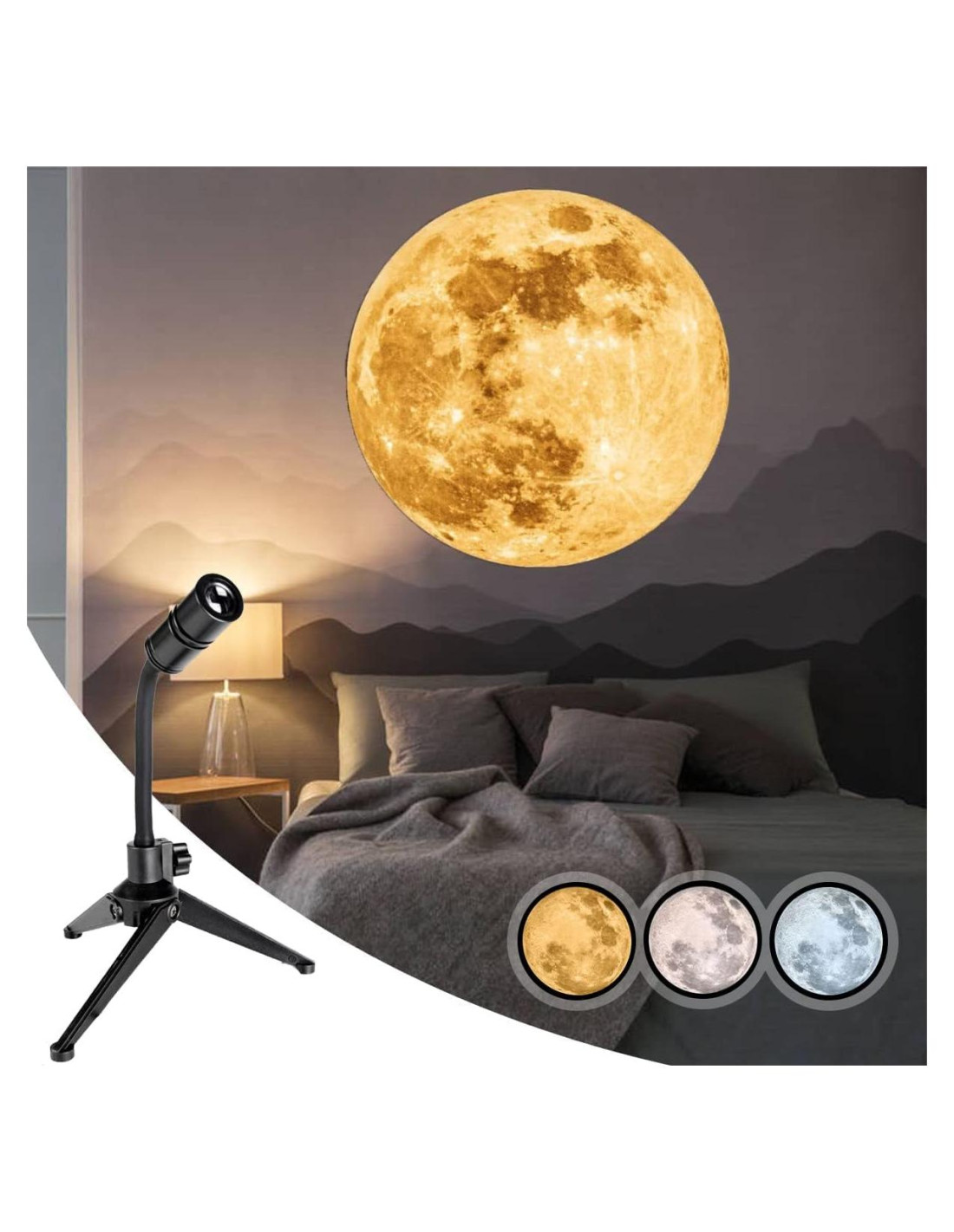 - [Mejora de la diapositiva de luna no desvanecida y imágenes de alta calidad y cambio de 3 colores, puedes ajustar tu atmósfera de color favorita según la atmósfera que necesites. El fondo de fotografía más especial, si estás tomando fotos, apaga la deslumbrante lámpara de araña y enciende esta luz de luna. ¡Bien, tu foto será amada por más personas! También se puede usar como un mural decorativo en tu sala de estar o dormitorio para dar a tu pareja momentos más románticos]