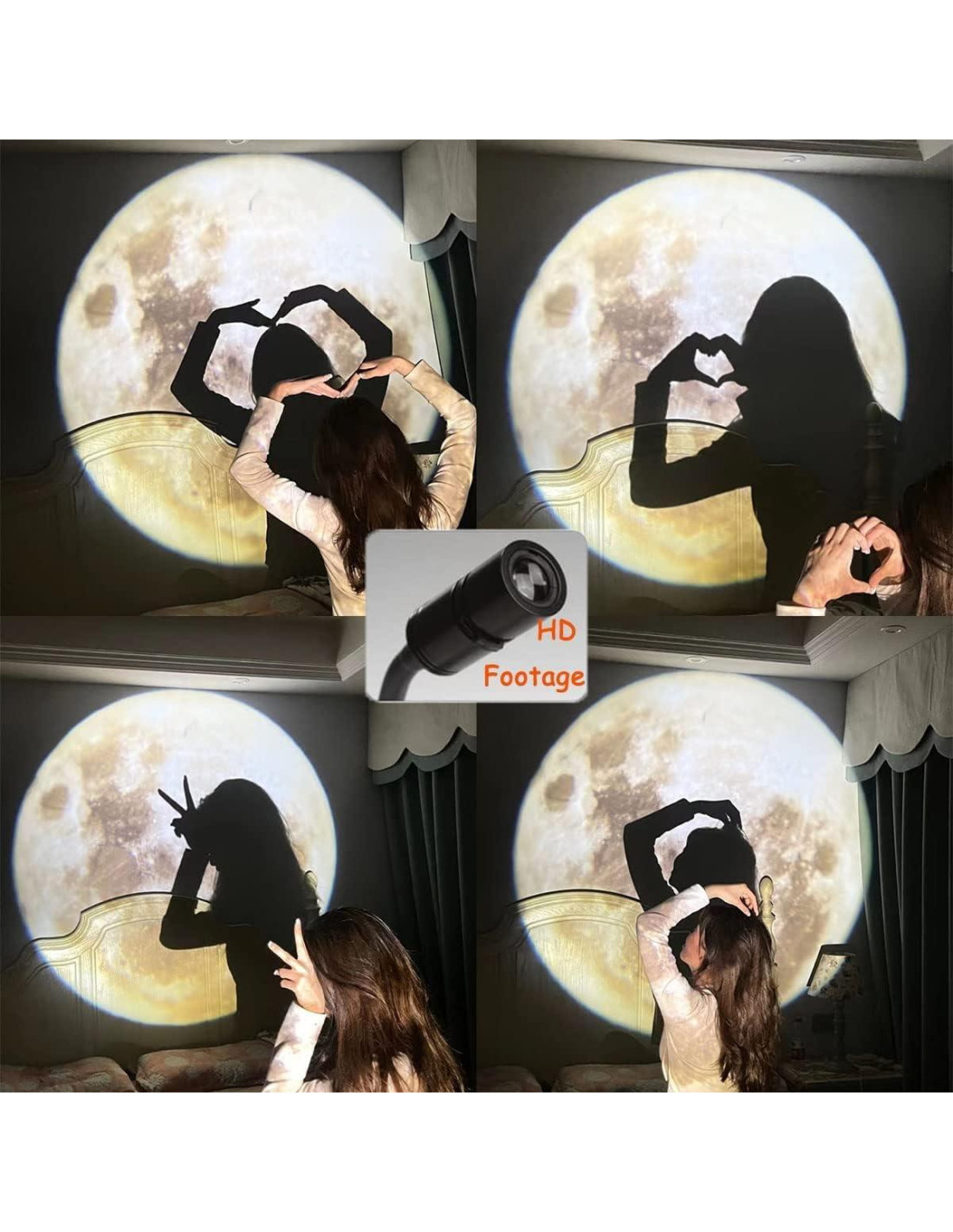- [El proyector de lámpara de luna no solo es adecuado para auto-retrato, iluminación fotográfica, sino también como luz ambiental para cenas a la luz de las velas, aniversarios, Navidad, Halloween, Acción de Gracias, decoración de cumpleaños, para crear una atmósfera romántica exclusiva para ti. Es un regalo especial para tus hijos, amigos, mamá, familia, y una sorpresa para tu amor]