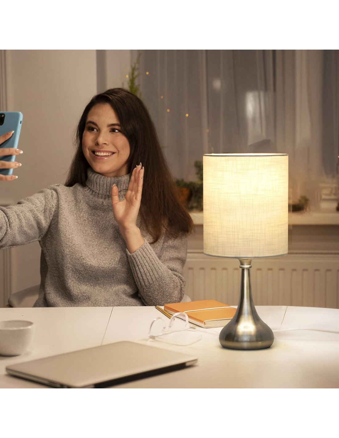 - Diseño Moderno y Cuida tus Ojos: Construida con una base plateada elegante y una pantalla blanca minimalista, la lámpara pequeña es un gran adorno que se puede integrar bien con tu estilo de decoración existente. La pantalla de tela TC de alta calidad suaviza la luminancia, haciéndola lo suficientemente brillante pero no dura para cegar tus ojos.