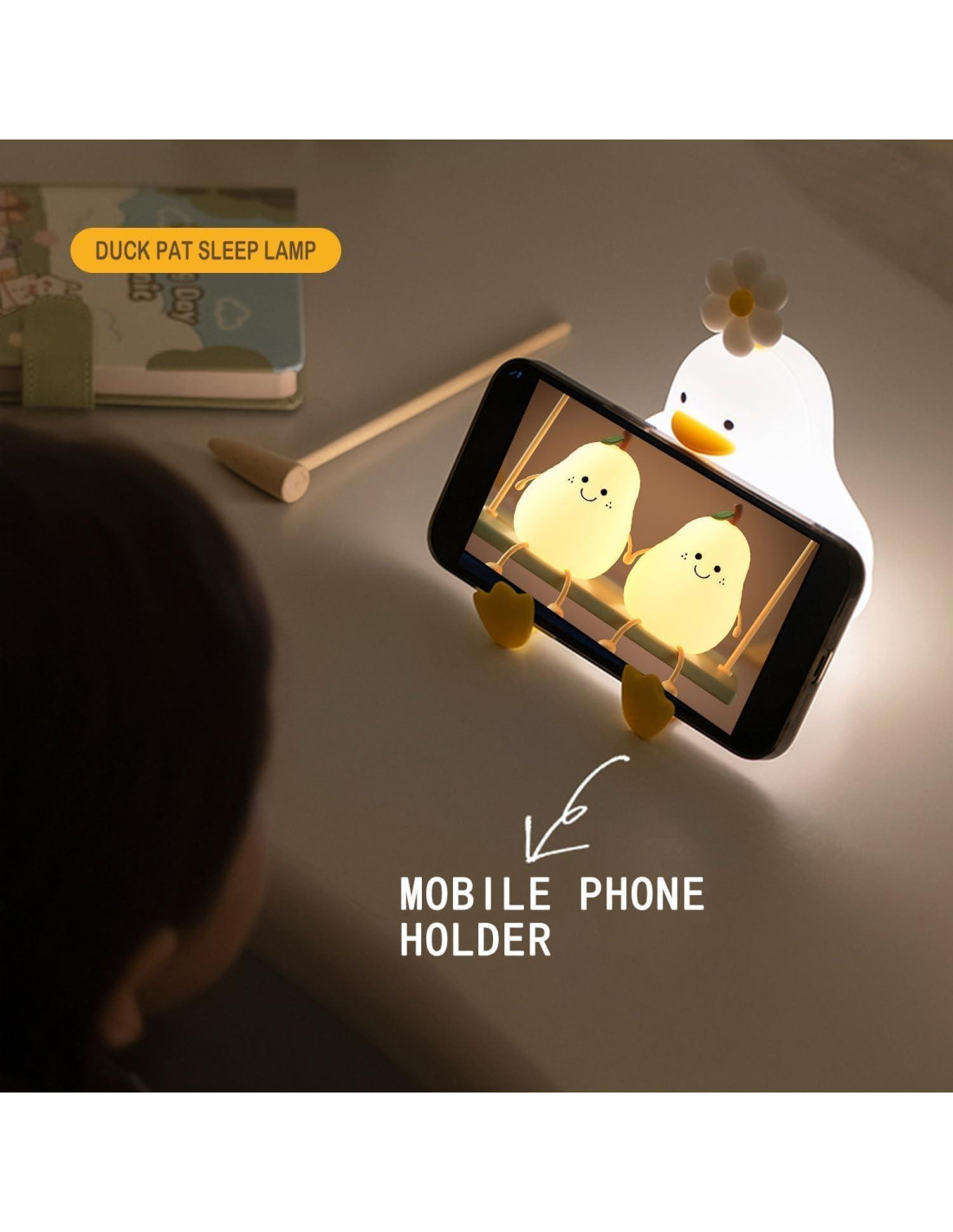 - 4. Las luces se pueden personalizar para apagarse automáticamente en 30 minutos, seguridad y estabilidad, sin luz azul, luz nocturna LED para niños con batería incorporada de 1200mAh. La linda luz de pato puede funcionar durante aproximadamente 6 horas, puerto de carga tipo-c, carga gratuita, largo tiempo de uso.