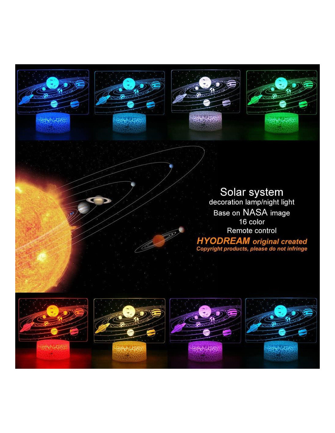 - <b> [Control Remoto y Toque Inteligente] </b> La luz nocturna 3D viene con control remoto y control táctil para ajustar los 7 o 16 colores diferentes como desees. Con el control remoto, la luz nocturna del sistema solar se puede fijar en un color estático o en degradado para decorar la habitación de los niños, sala de estar, dormitorio, oficina, etc.