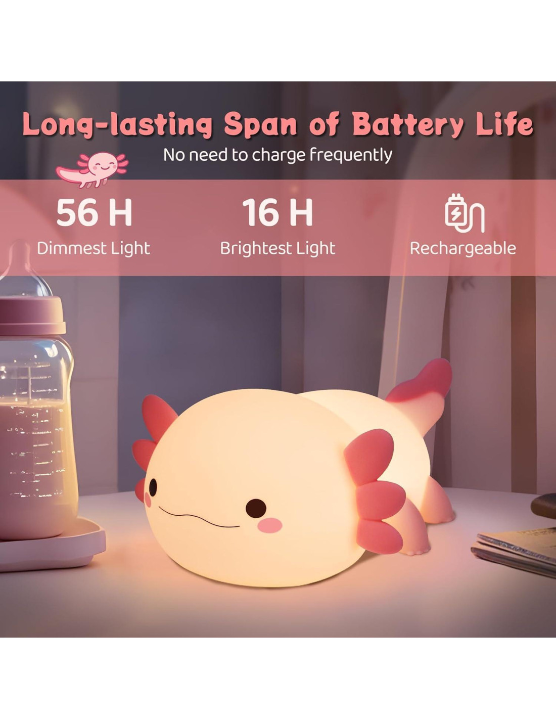 - Regalos Lindos para Adultos, Adolescentes y Bebés: La linda luz de axolote, hecha de silicona lavable sin BPA, ofrece un tacto agradablemente suave, lo que la convierte en una gran opción de regalo para familiares y amigos.