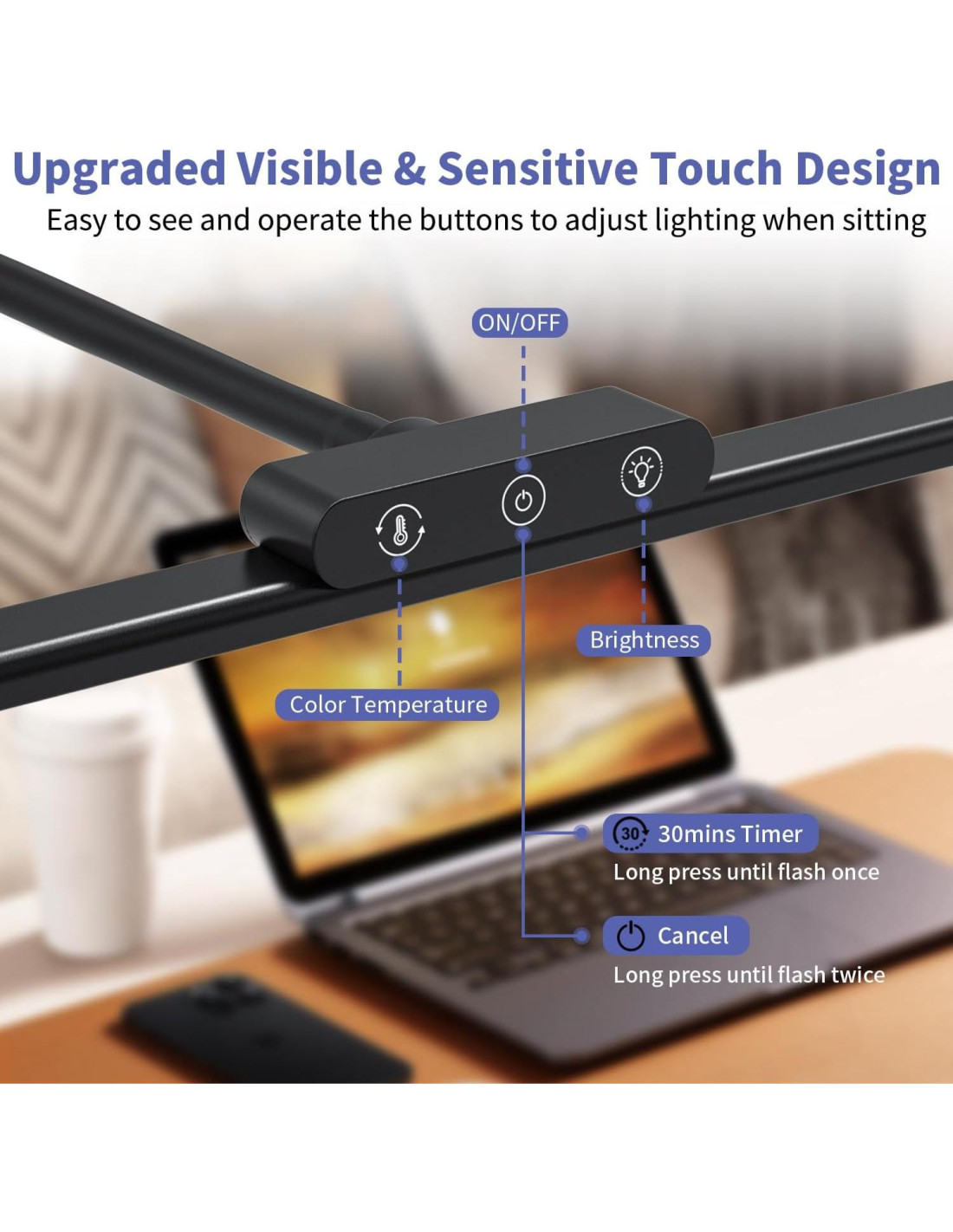 - Base Estable que se Ajusta a Todas las Mesas Esta lámpara de escritorio alta viene con una base pesada de metal que le permite mantenerse firme en cualquier tipo de mesa y ocupa poco espacio, ideal para monitores duales, monitores anchos curvados o escritorios multitarea en forma de L.