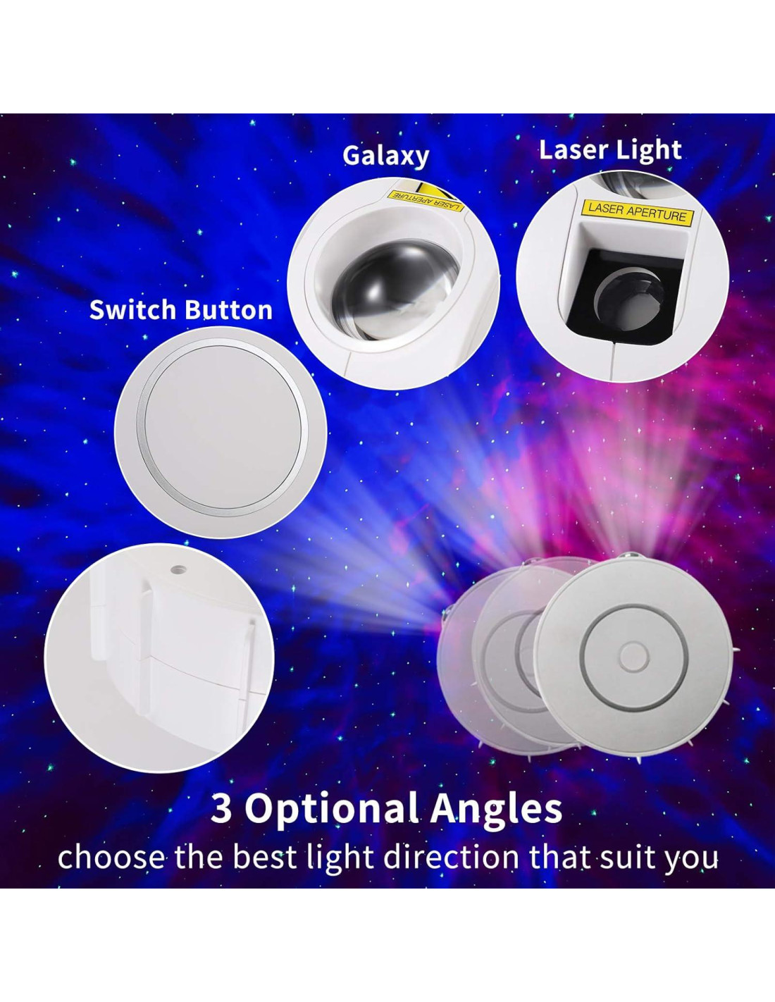 Gracias a 3 lados planos en la base, el proyector con luz nocturna de estrellas LED se puede ajustar y colocar en 3 direcciones diferentes, por ejemplo, en el