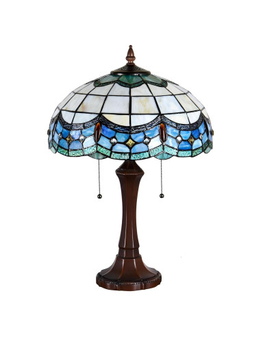 - [Lámpara Tiffany Hecha a Mano] Esta Lámpara de Mesa Tiffany Azul con pantalla de 40 cm de ancho y altura total de 58 cm. Viene con una cadena de 178 cm de largo, interruptor de cadena de doble tirón, esta lámpara de mesa de vidrio teñido consiste en una pantalla de lámpara de vidrio Tiffany y una base de construcción de resina con acabado en bronce oscuro. La lámpara Tiffany victoriana es uno de los mejores ejemplos de decoración de artes y oficios jamás producidos, los accesorios ornamentales añaden un sentido de carácter e historia a un entorno moderno.