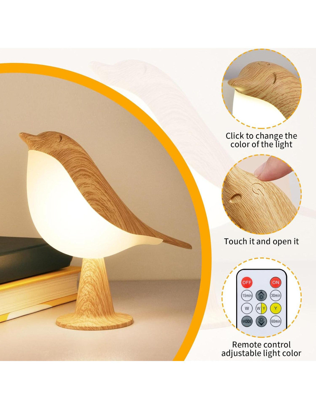 - Diseño Portátil y Recargable: Esta lámpara inalámbrica ligera es adecuada para uso en movimiento, proporcionando iluminación donde la necesites. Equipado con una potente batería recargable de 1800mAh, se carga completamente en solo 1-3 horas a través del conveniente puerto de carga ubicado en la base de la cola del pájaro. Equipado con un control remoto, puedes cambiar el color de la luz que desees en cualquier momento y lugar.