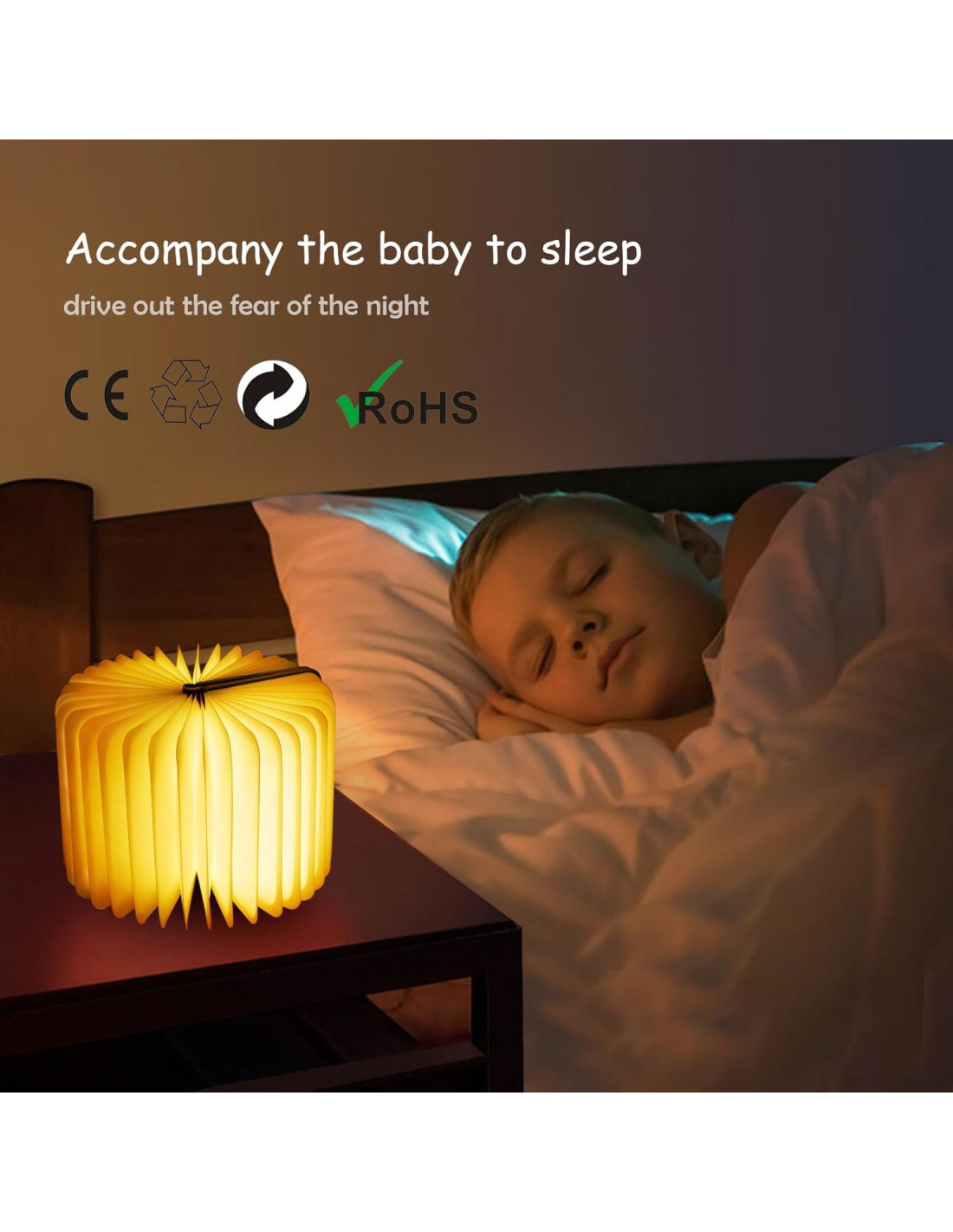 - Luz suave - La página del libro tiene buena transmitancia de luz. La lámpara de libro plegable tiene tres colores de luz para que elijas. Cada vez que la abras, puedes cambiar un color para crear un ambiente cálido para dormir.