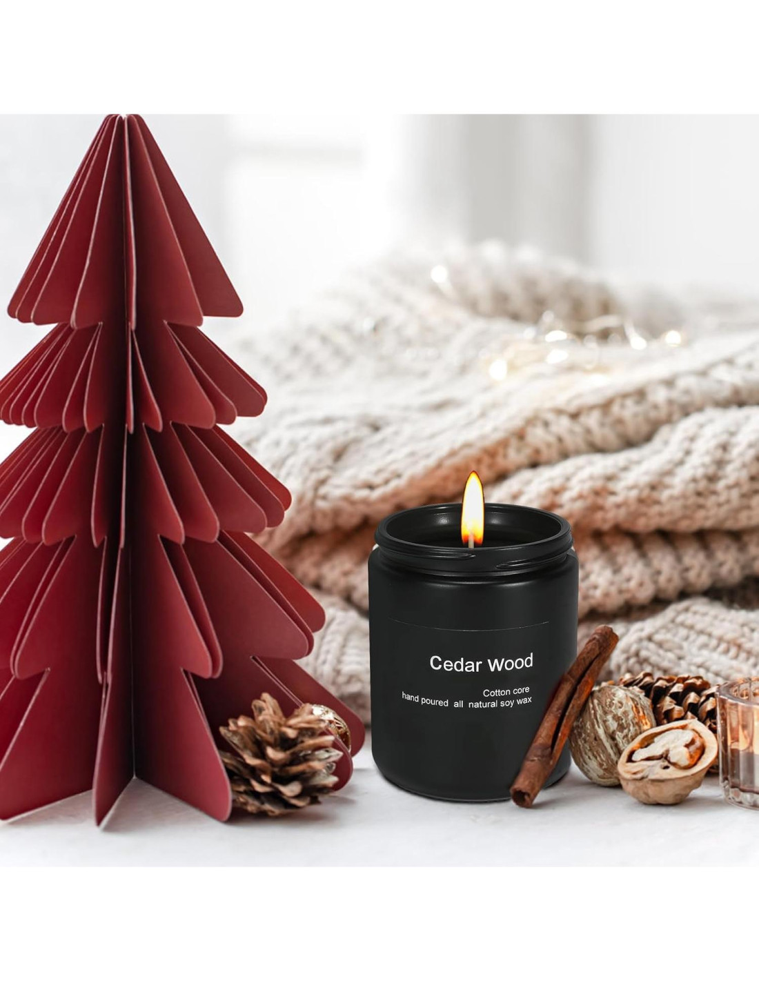 - VELAS DE CERA DE SOJA PREMIUM: Vela de cera de soja natural con una mecha de algodón 100% es segura y no tóxica para usar. Tenemos tres tipos de velas aromatizadas para que elijas. Lavanda, Rosa y Sándalo, Cedro. Regalos de Navidad para mujeres y hombres.