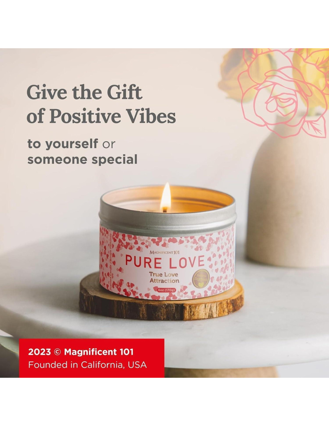 - VELA AROMÁTICA DE 6 OZ (170 g): Hecha de Cera de Soja Natural (Sin Petróleo ni Cera de Parafina). La Vela de Amor Puro de Atracción Verdadera está perfumada con aceites esenciales de salvia, rosa y lavanda, y hecha de cera de soja. Ideal para crear un ambiente positivo, siendo el regalo perfecto para el Día de San Valentín.