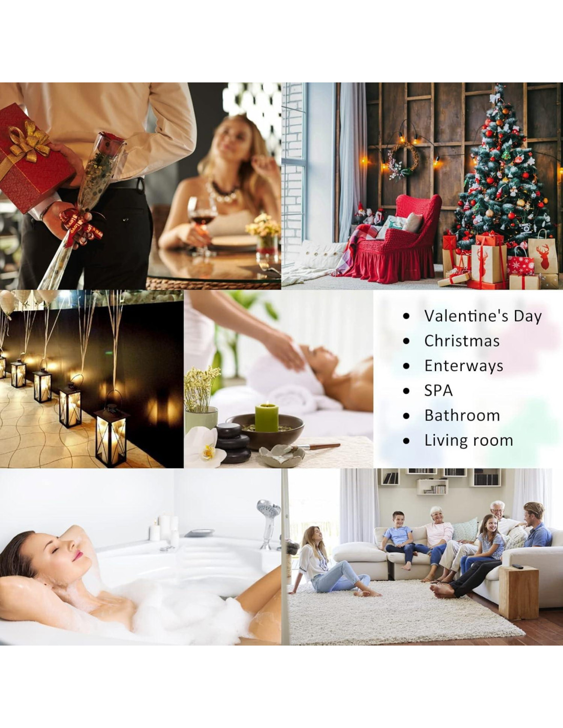 - Aromas de Cubos de Cera Aromática: Cada cera aromática tiene ocho pequeños cubos de cera y un total de 70.9 gramos y contiene 16 tipos de diferentes fragancias, Calabaza, Flor de Nectarina, Manzana y Canela, Madera de Cedro de Invierno, Menta y Jazmín Blanco, Coco y Vainilla, Granada Negra, Higo Mediterráneo, Rosa, Lavanda, Jazmín, Cereza, Brisa Oceánica, Ropa Fresca, Bosque Bohemio, Vientos de Verano
