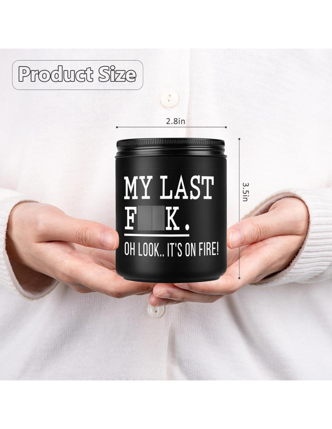 Nuestras velas con la frase humorística "Mi Último F-ck. Oh Mira..." se convierten en regalos divertidos para él o ella. Grandes regalos relajantes para mujeres, hombres, compañeros de trabajo, jefa, papá, mamá, amigo, mejor amigo, esposa, esposo, novia, novio, hermana, hermano, gerente, o cualquiera que disfrute de un poco de humor. Irradiando con un aroma floral y herbal, la fragancia de lavanda añade disfrute a tu vida. Nuestra vela masculina captura la atmósfera de madera fresca y asegura una fragancia masculina memorable. Irradiando con un aroma floral y herbal, la fragancia de lavanda añade disfrute a tu vida. Infundida con una mezcla de aceites esenciales que promueven la relajación, la calma y la paz mental. Empacadas en una delicada caja, nuestras velas aromáticas están bien presentadas como regalos relajantes para mujeres o hombres, regalos de relajación para mujeres, regalos divertidos de Navidad para compañeros de trabajo, regalos geniales para jefes, regalos divertidos para amigos, regalos para animar, regalos divertidos de oficina para compañeros de trabajo, regalos de cumpleaños para amigos. También son geniales para San Valentín, Día de las Madres, Día del Jefe, Día de Acción de Gracias, elefante blanco y rellenos de medias. Mejora tu hogar con nuestras velas aromáticas, un complemento elegante para tu decoración. Con su aroma duradero, puedes relajarte, rejuvenecer y crear un espacio donde el ritmo agitado de la vida pase a un segundo plano, permitiéndote conectar con tu tranquilidad interior. ¿Está bloqueado como en la imagen? No. No estaba bloqueado. ¿Son seguras de usar tus velas aromáticas? Si bien nuestras velas aromáticas son seguras cuando se usan correctamente, recomendamos mantenerlas fuera del alcance de mascotas y niños y nunca dejarlas desatendidas. ¿Las velas de Regalo de Hada están hechas con ingredientes naturales? ¡Sí! Usamos una combinación de cera natural y aceites esenciales para crear nuestras fragancias. ¿Es posible incluir un mensaje de regalo con el artículo? Ciertamente, puedes seleccionar 'Esto es un regalo' al hacer el pedido y proporcionar tu mensaje en el espacio designado. No busques más, tenemos regalos de velas distinguidos que te darán a ti y a las personas que te importan una gran risa en un momento. Nació de una idea simple: añadir un toque de magia a la vida cotidiana a través de nuestras encantadoras velas aromáticas. Cada vela está hecha con amor y cuidado, diseñada para traer felicidad y risas, haciéndolas regalos ideales. Nuestras velas divertidas y humorísticas seguramente iluminarán cualquier habitación y elevarán cada espíritu. Deja que el Regalo de Hada te transporte a un mundo de encanto.